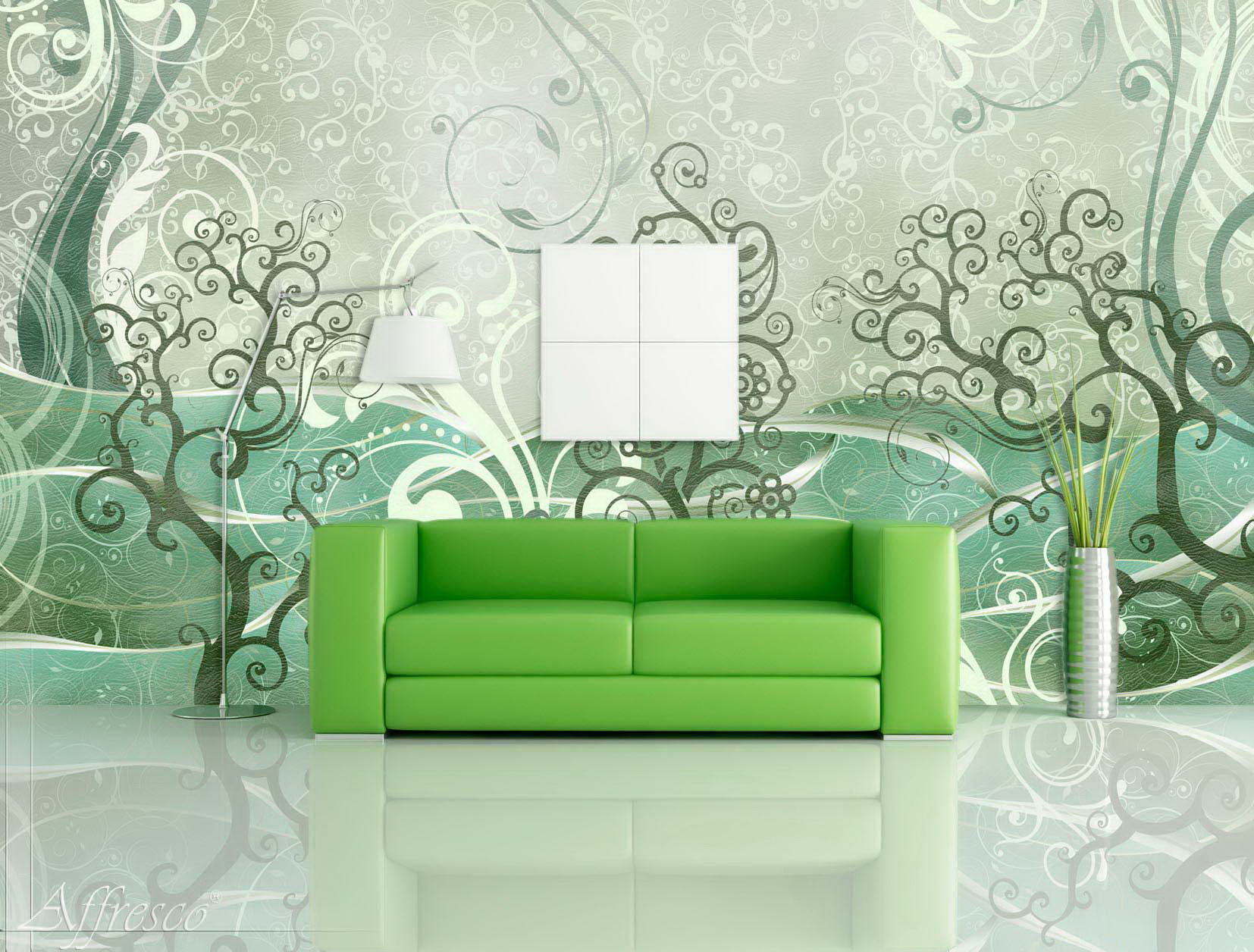 As paredes restantes são cobertas com telas neutras de tons adequados. Para entender como a colagem desse papel de parede é realizada, a foto ajudará.