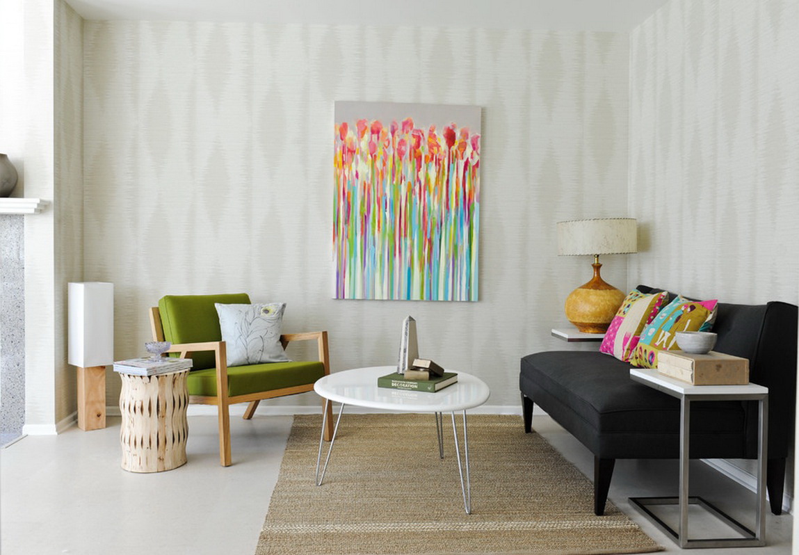 - Ao comprar papel de parede em uma sala de cores diferentes, escolha um material com a mesma textura e acabamento superficial. A combinação de tela fosca e brilhante é indesejável.