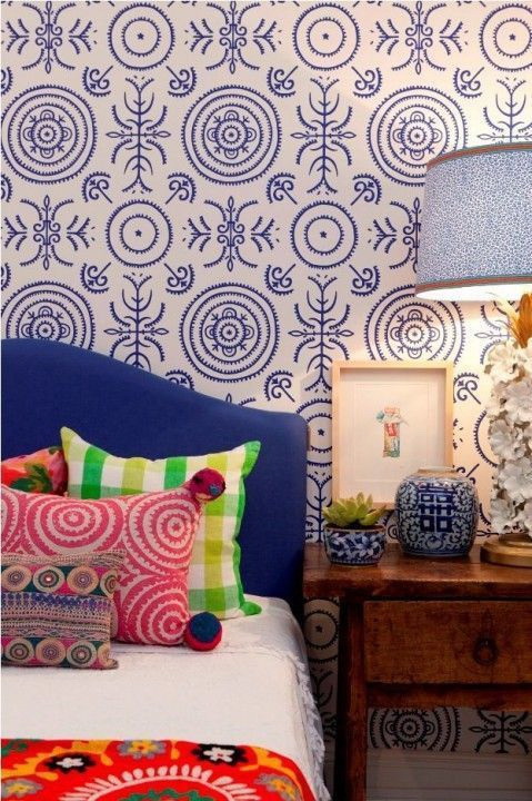 Para criar um interior com uma decoração incomum, você pode combinar cores ricas com telas suaves ou padronizadas de tons suaves.