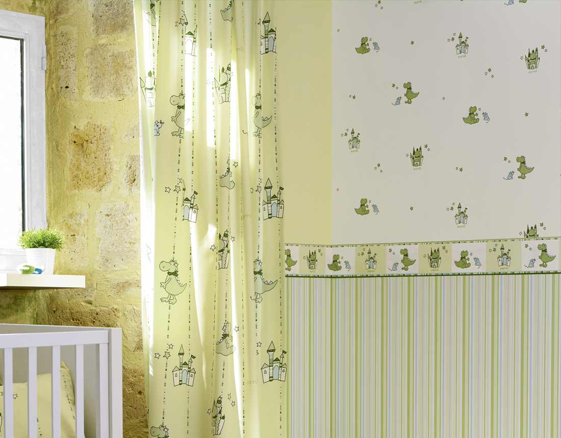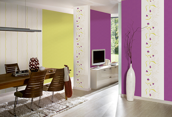 A separação das fronteiras é feita com uma borda. Para estimar a aparência desses papéis de parede combinados, a foto ajudará.
