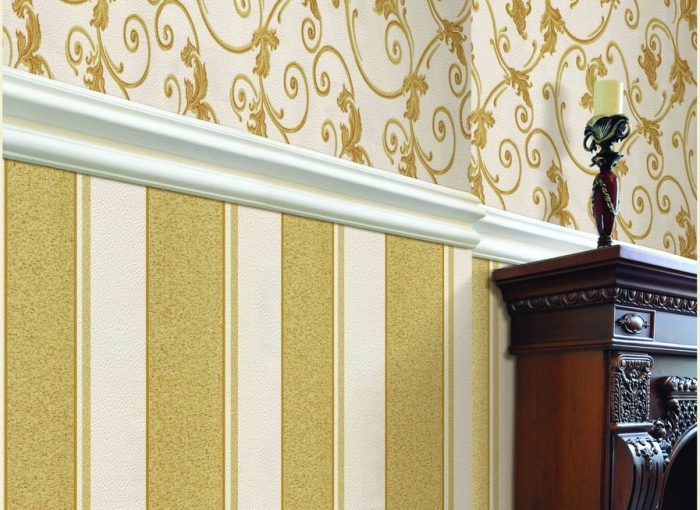 Ele fornece para colar na forma de duas tiras com divisão horizontalmente a uma certa altura. Para a parte superior, panos com ornamento volumétrico são normalmente usados, e para a parte inferior - um padrão de listras verticais de diferentes espessuras.