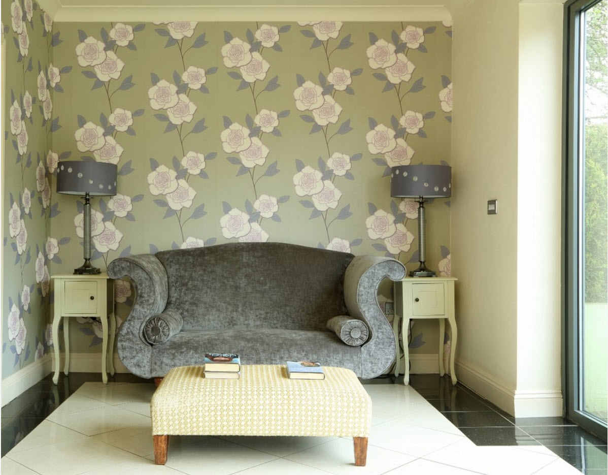 Eles não devem desaparecer e desmoronar. Em alguns casos, você pode combinar papel de parede comum e lavável para paredes diferentes. A gama de cores dos acabamentos é selecionada levando em consideração a mobília e o estilo da sala.