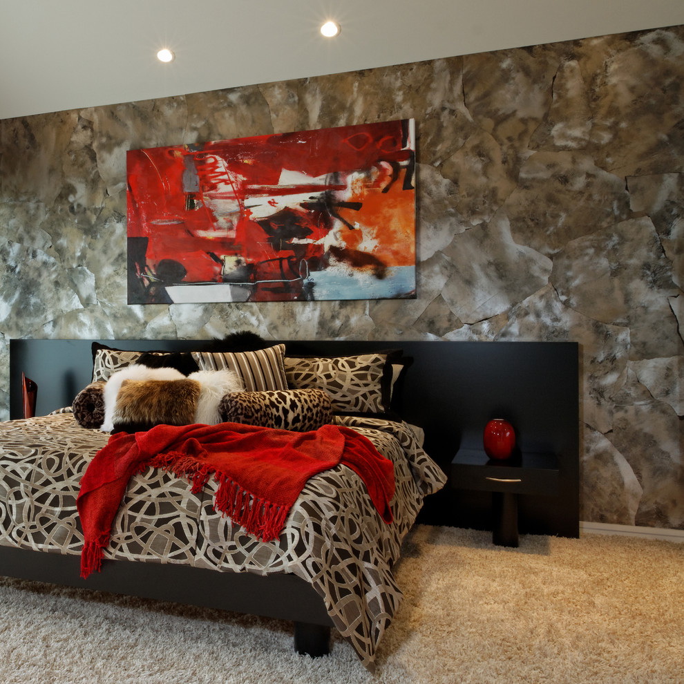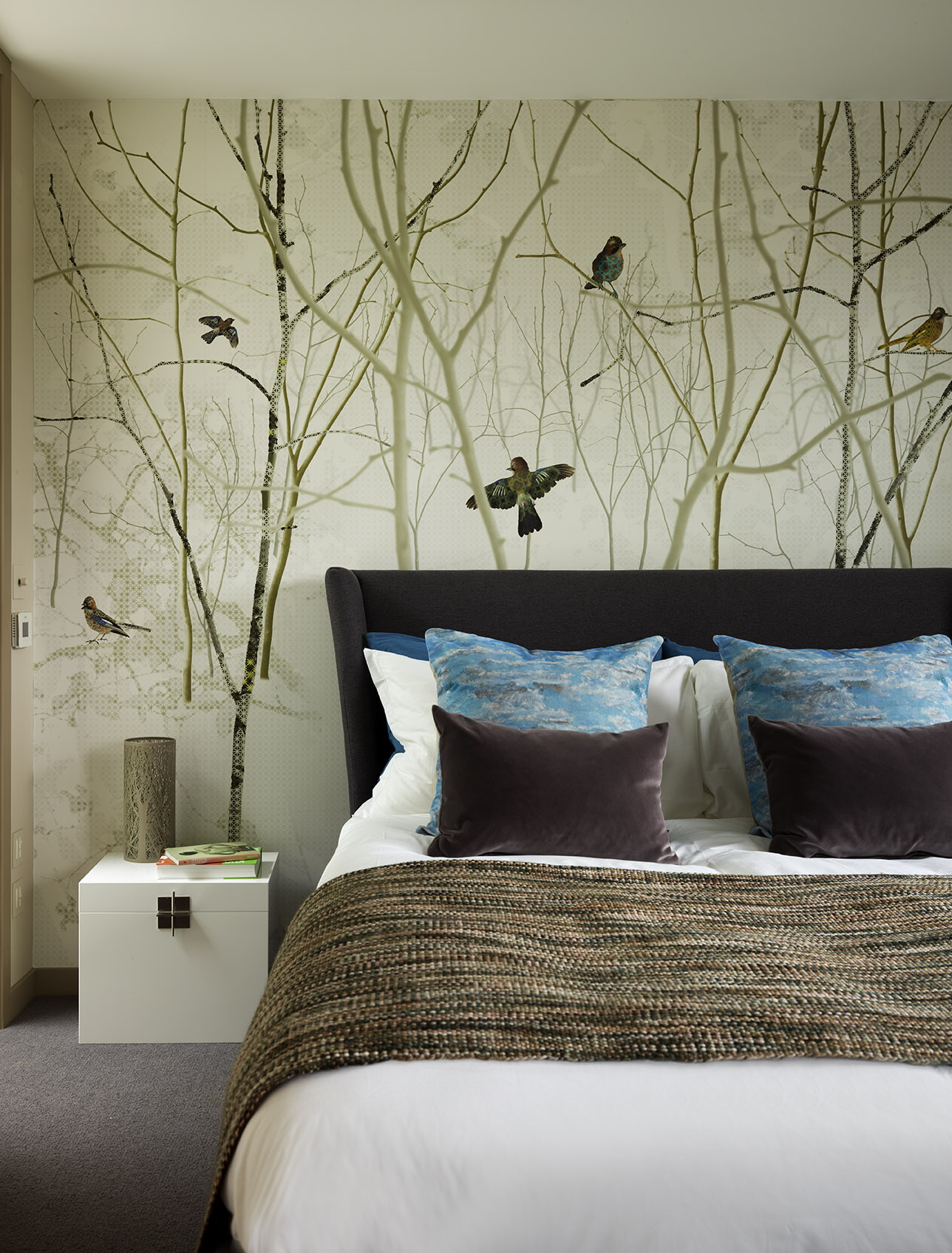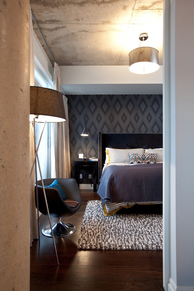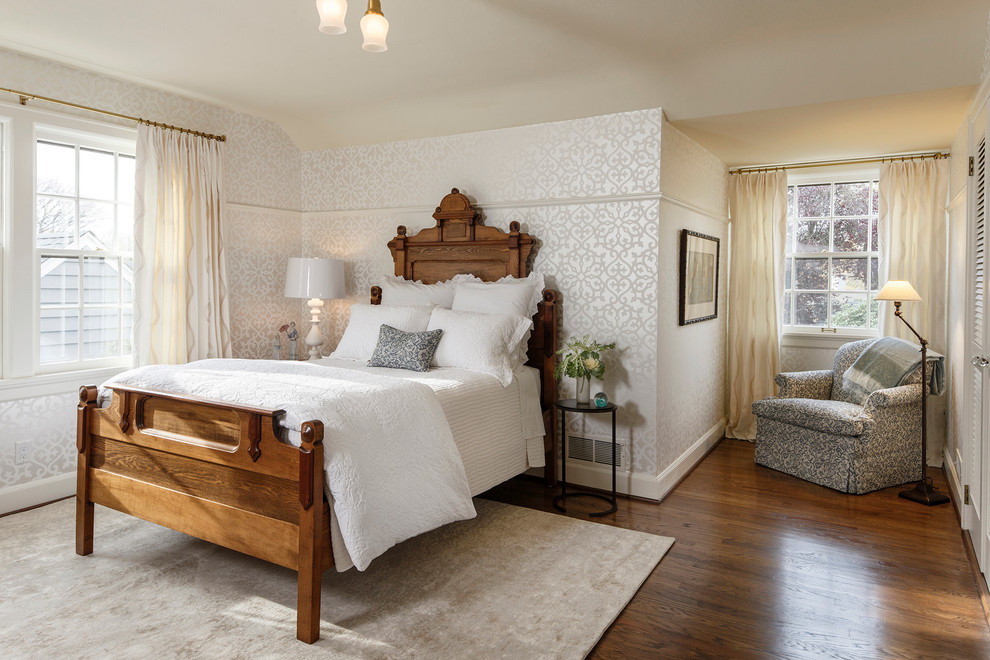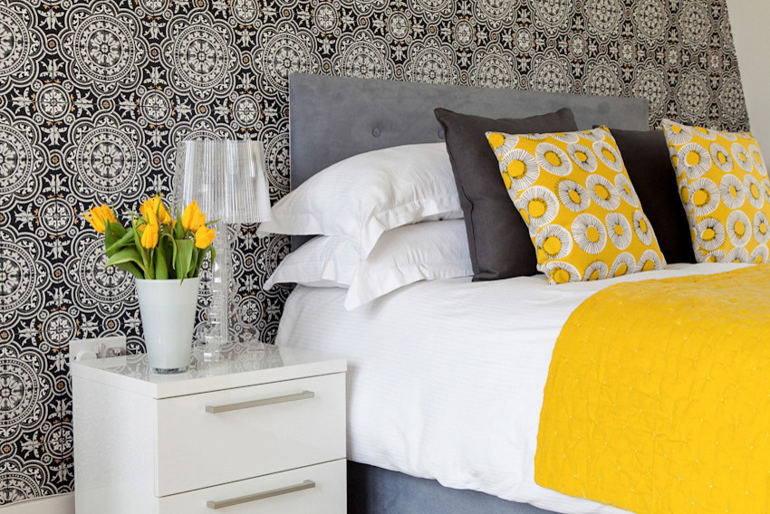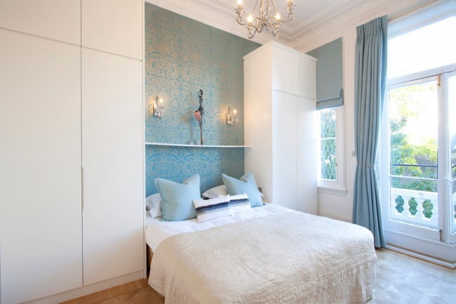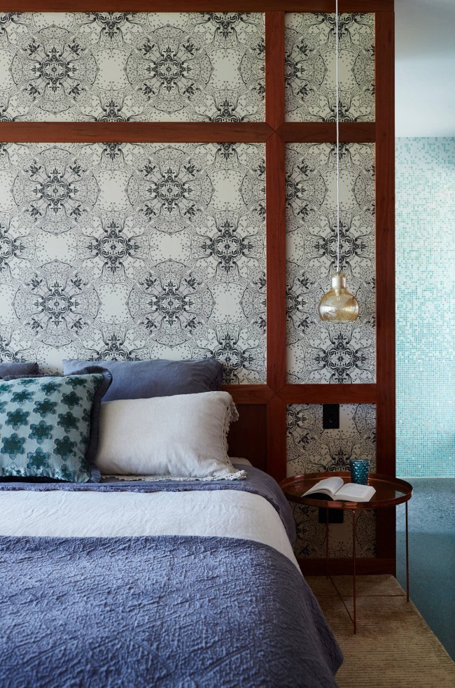 - o jogo em contrastes - a seleção de papel de parede com um grande padrão de apenas uma parede, por exemplo, adjacente à cabeceira da cama;