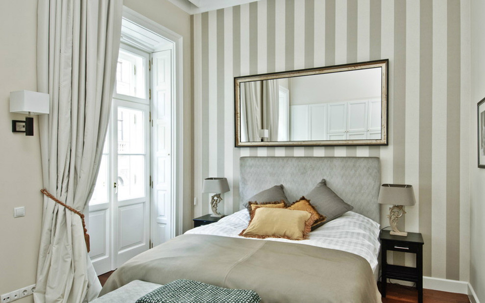 - a orientação horizontal dos padrões permite "afastar" as paredes, em detrimento da percepção da altura dos tetos.