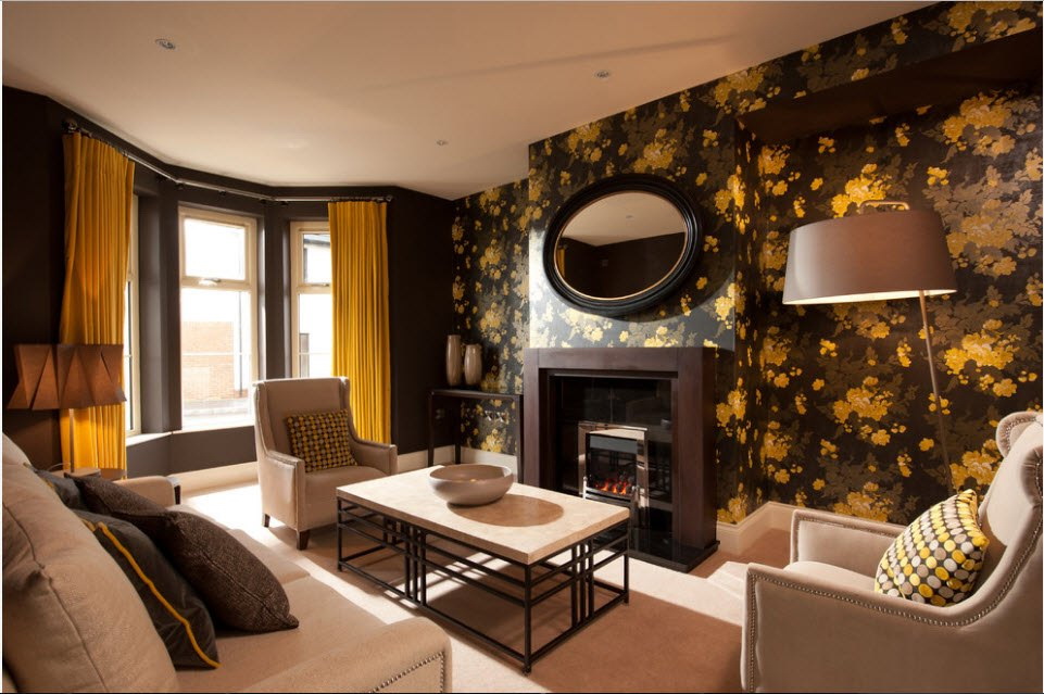 - Papel de parede deve estar em harmonia com o resto dos tipos de decoração na sala, móveis, decoração.