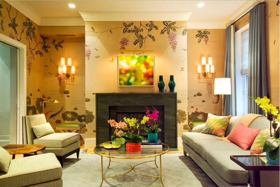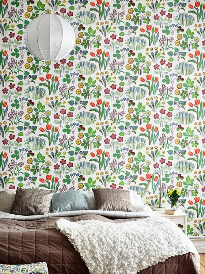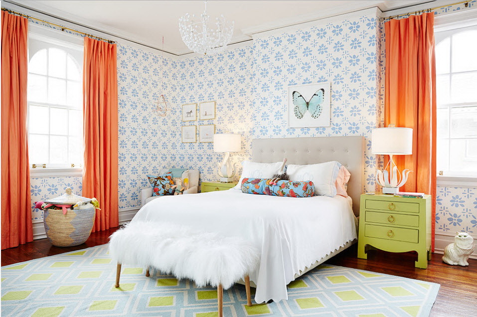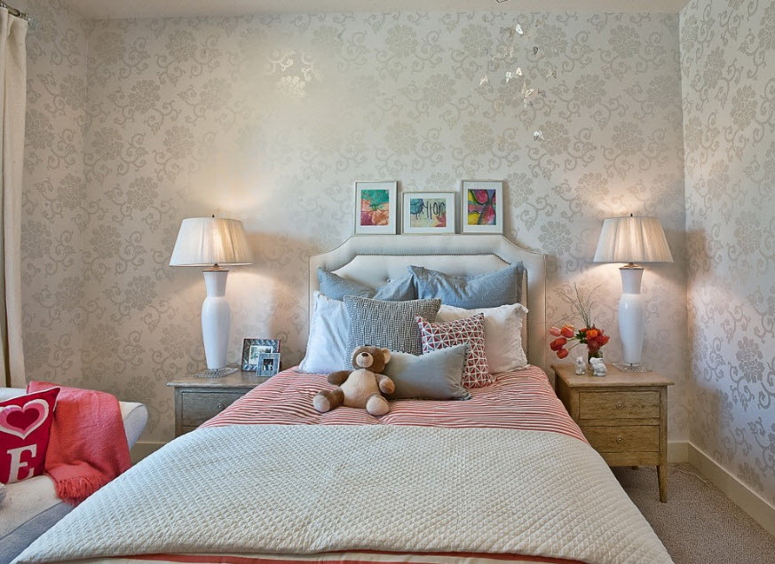 Curiosamente nas paredes do quarto olhar padrões na forma de várias cenas da vida ou figuras de pessoas. No entanto, tais ornamentos devem ocupar pequenas áreas, caso contrário, o interior será deprimente e difícil de perceber.
