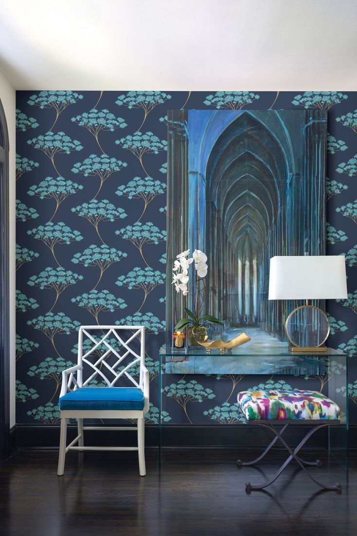 Como o corredor não é grande, o padrão no papel de parede deve ser relaxado e discreto. Uma boa opção seria um papel de parede leve sem padrão ou com pequenos ornamentos florais.