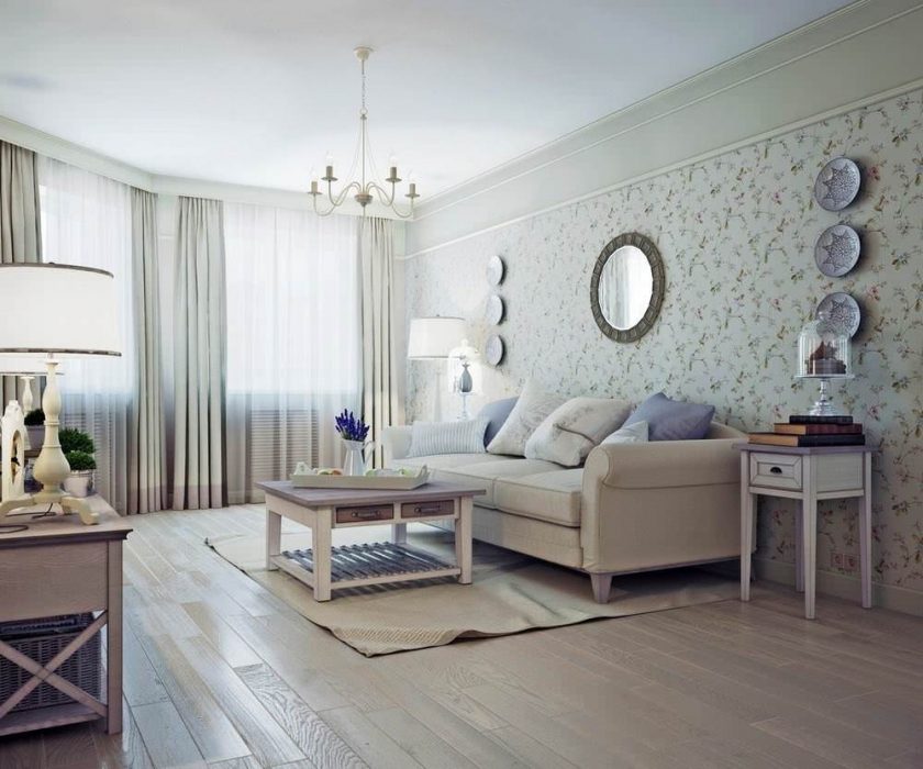 Os papéis de parede que atendem aos critérios descritos estão no estilo da Provença. Se não houver certeza se o material é feito no estilo certo, é melhor consultar o vendedor ou o designer. Ou apenas pintar as paredes em tons pastel.