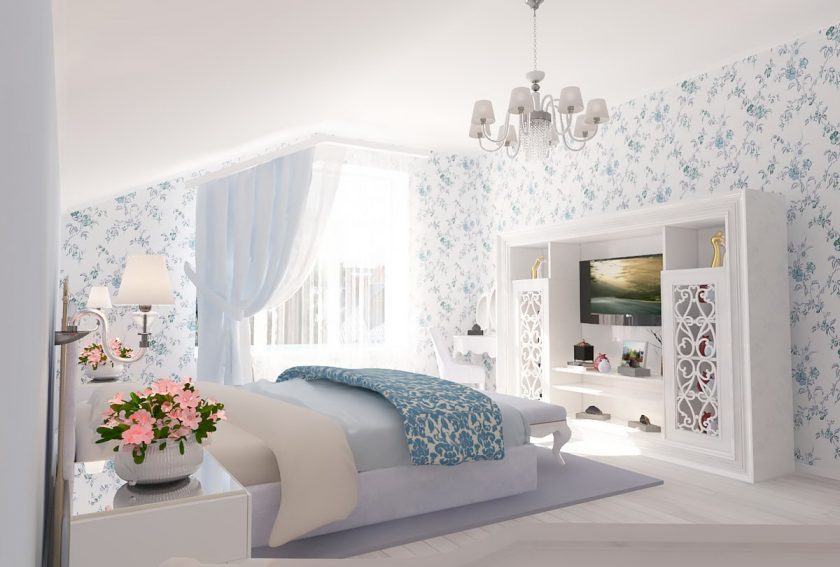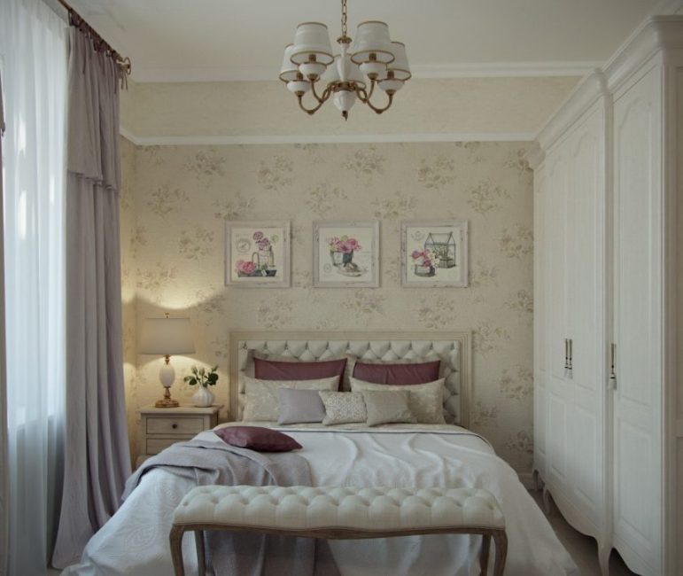 Um quarto é uma sala especial na qual a pessoa descansa não apenas com o corpo, mas também com a alma. O interior deve contribuir para um descanso de pleno direito, portanto, é realizado no projeto que é o mais próximo possível do estilo de Provence.
