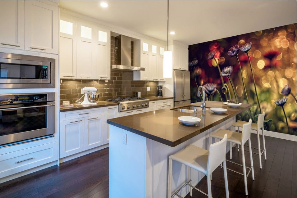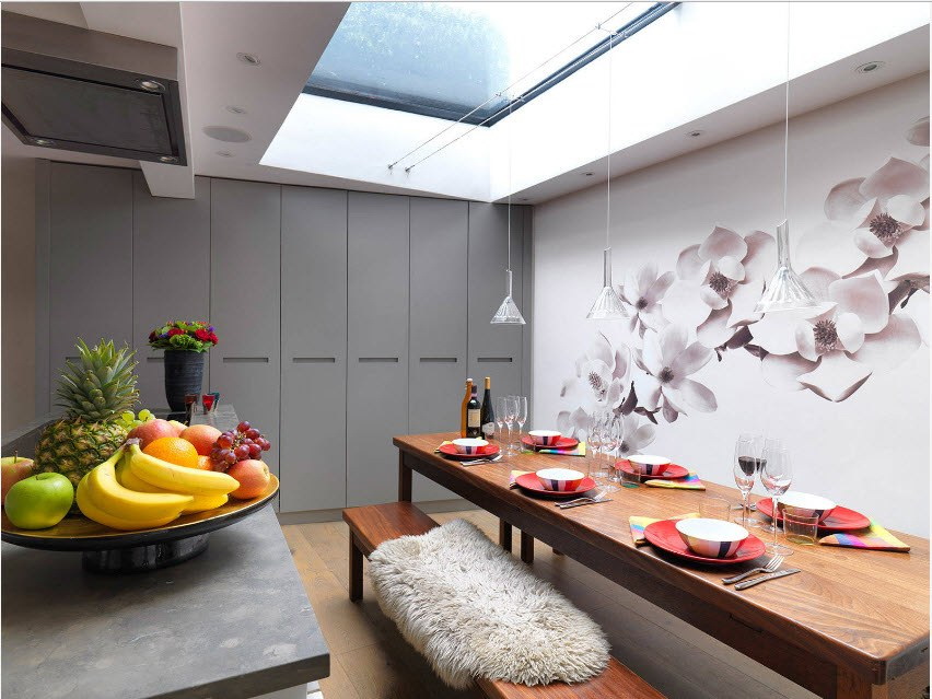 Na cozinha há alta umidade e um grande número de odores diferentes, então a escolha do papel de parede para esta sala deve ser abordada com muito cuidado e cálculo.