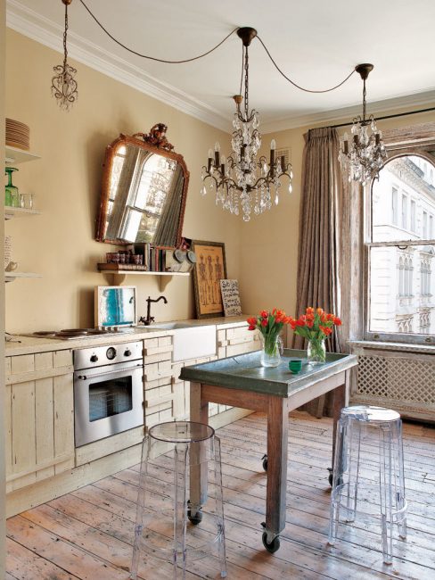 Beirais de teto, as janelas e as portas fazer um quadro decorativo. Provence não exige rigor e simetria, o que não pode ser dito sobre os clássicos e o estilo inglês.