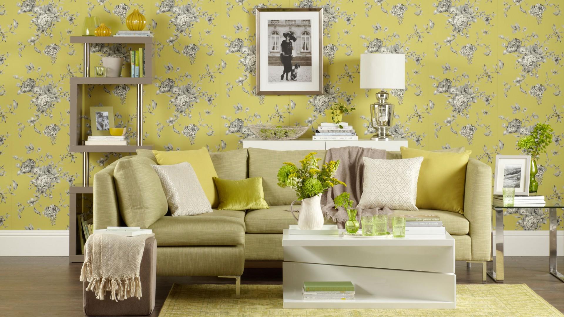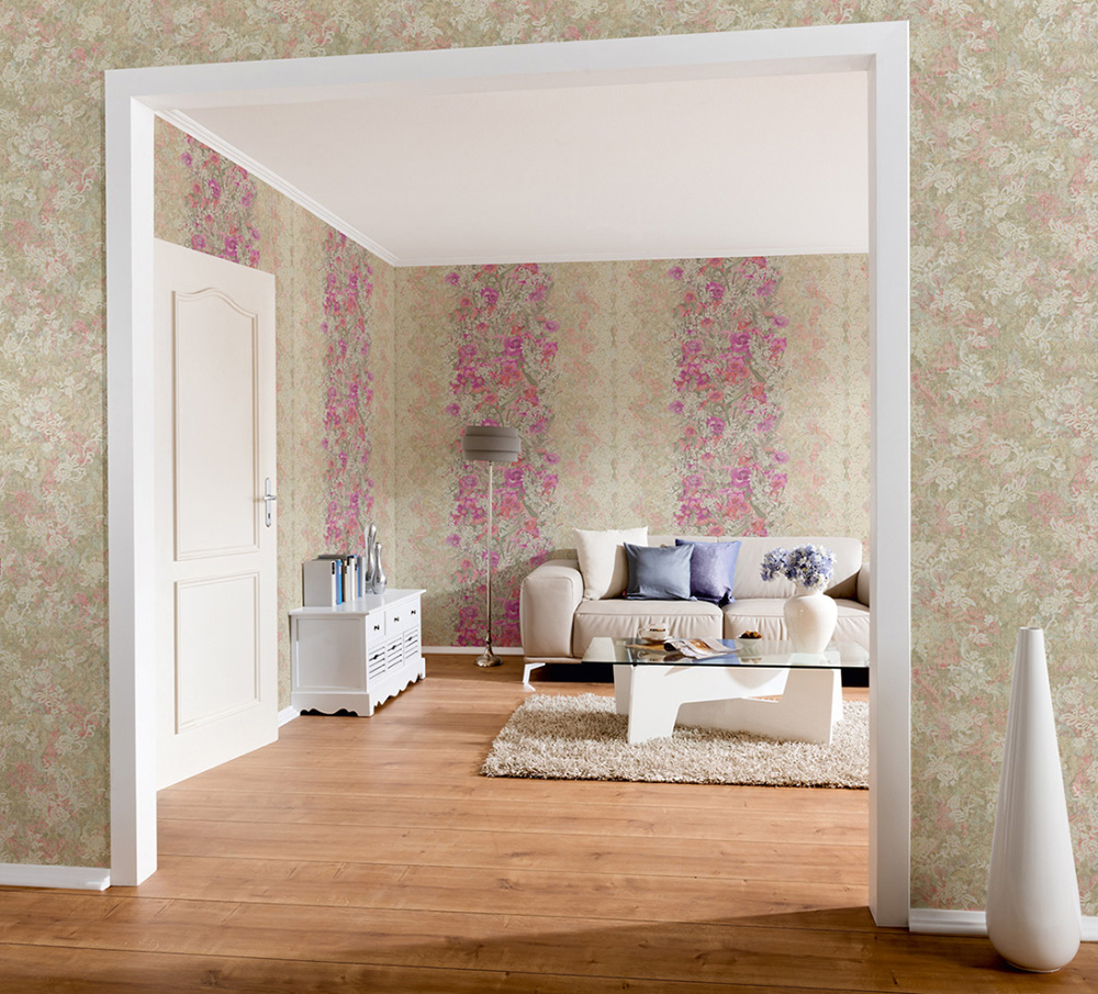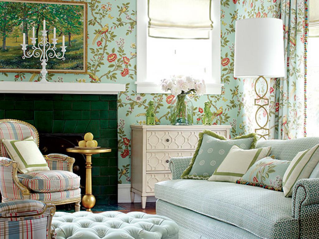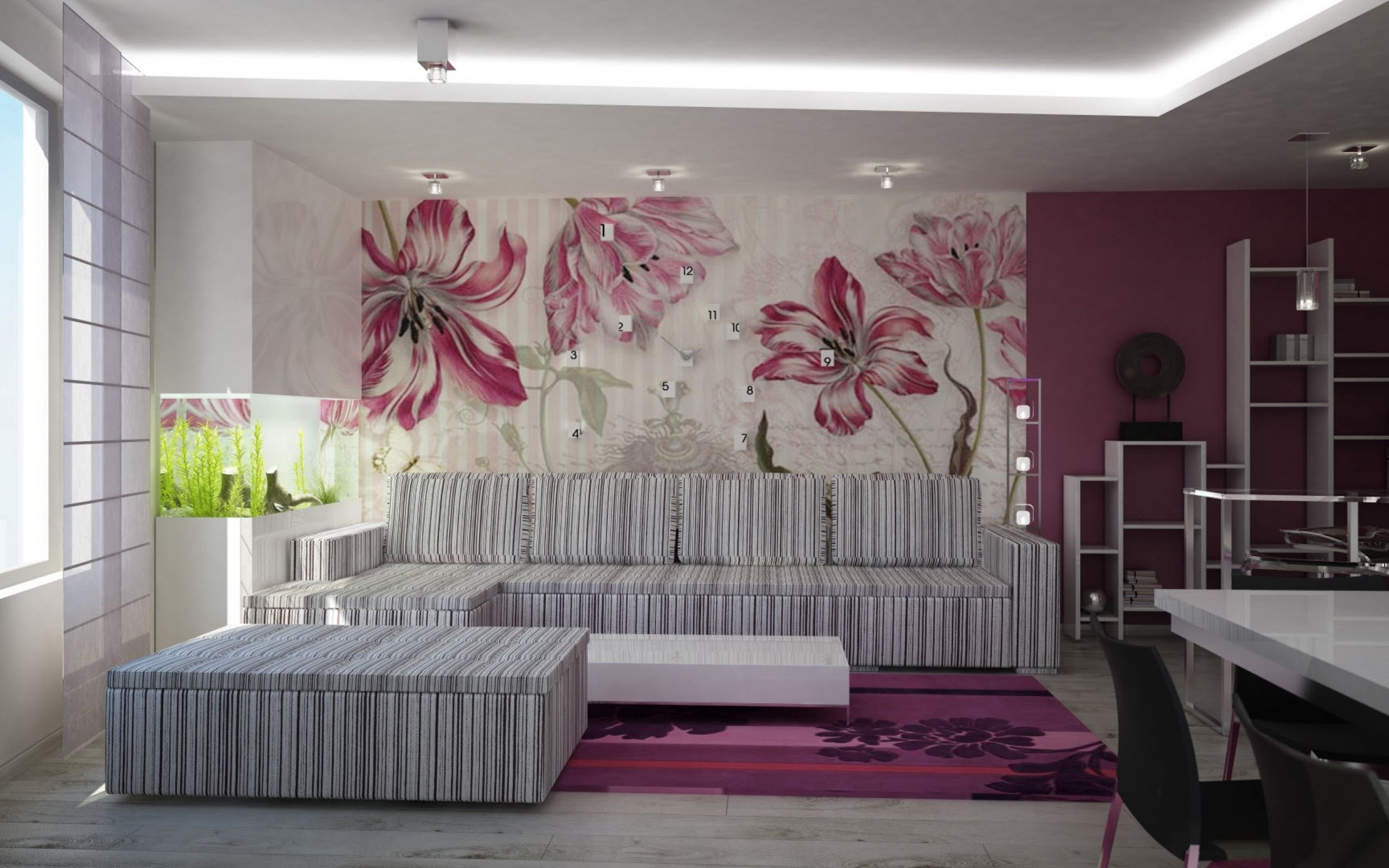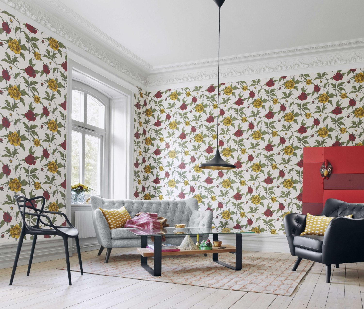 Decida o papel de parede de fundo que estará na sala - matiz claro, escuro ou brilhante. Só então você pode começar a escolher o tamanho da estampa floral, sua sombra, frequência de aplicação.