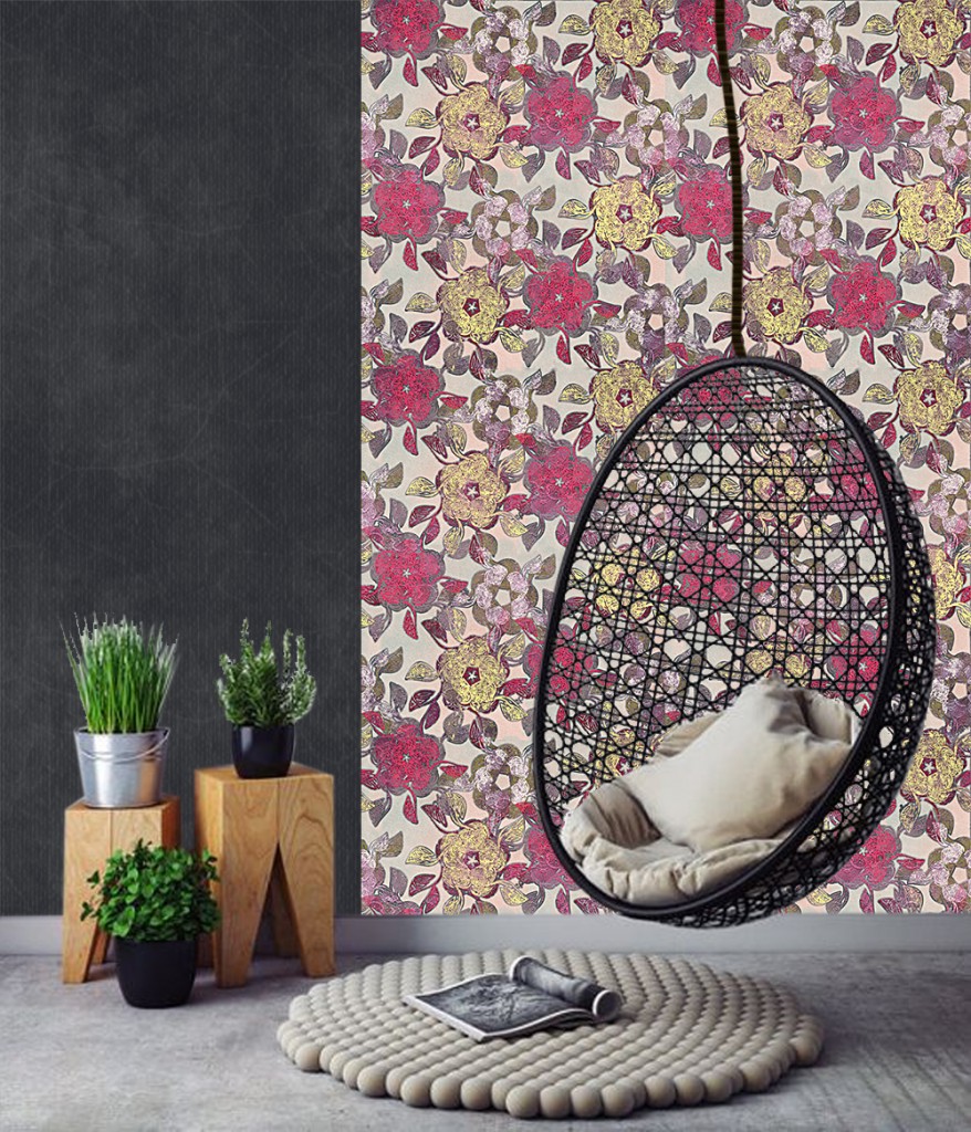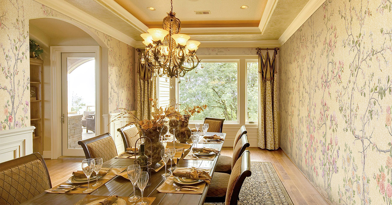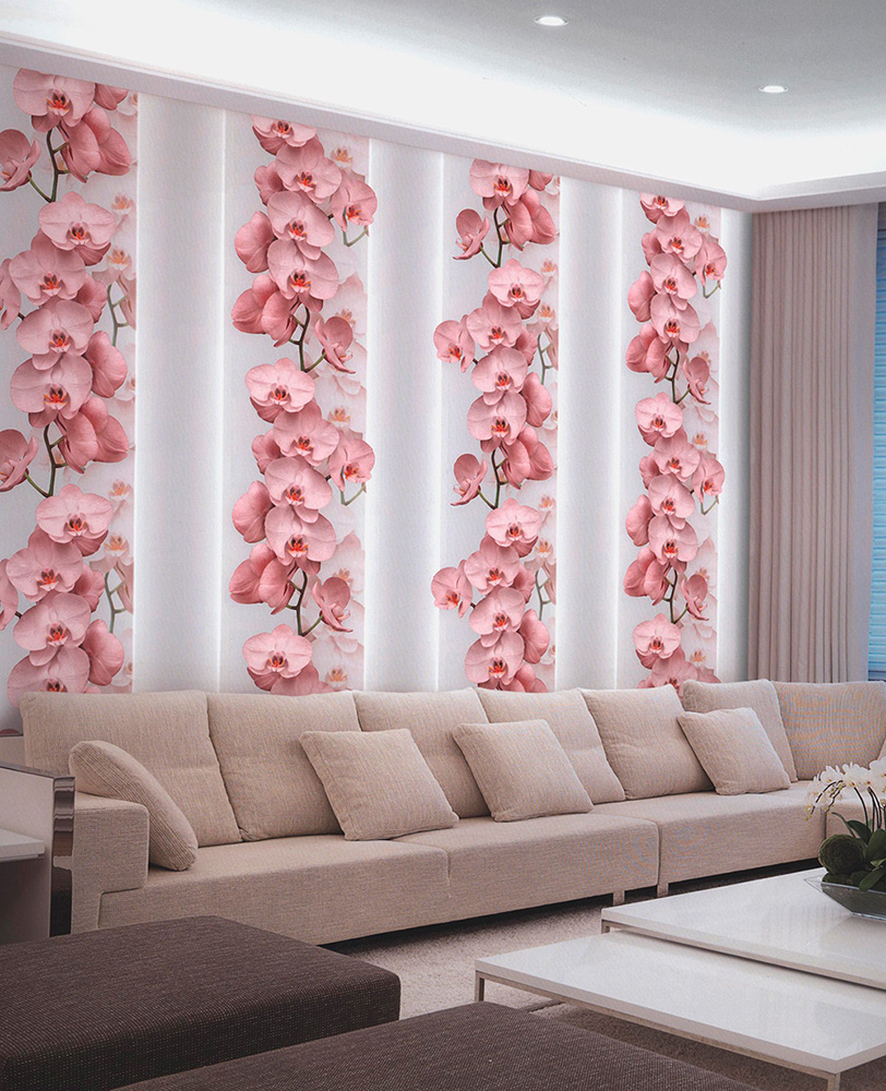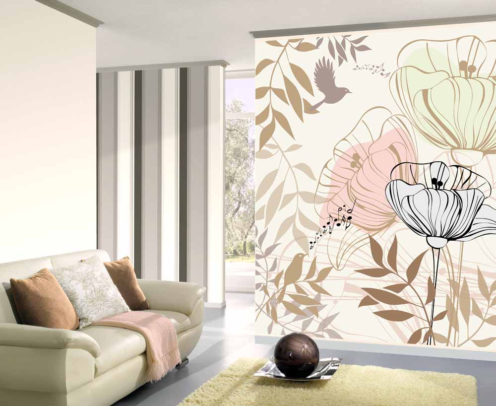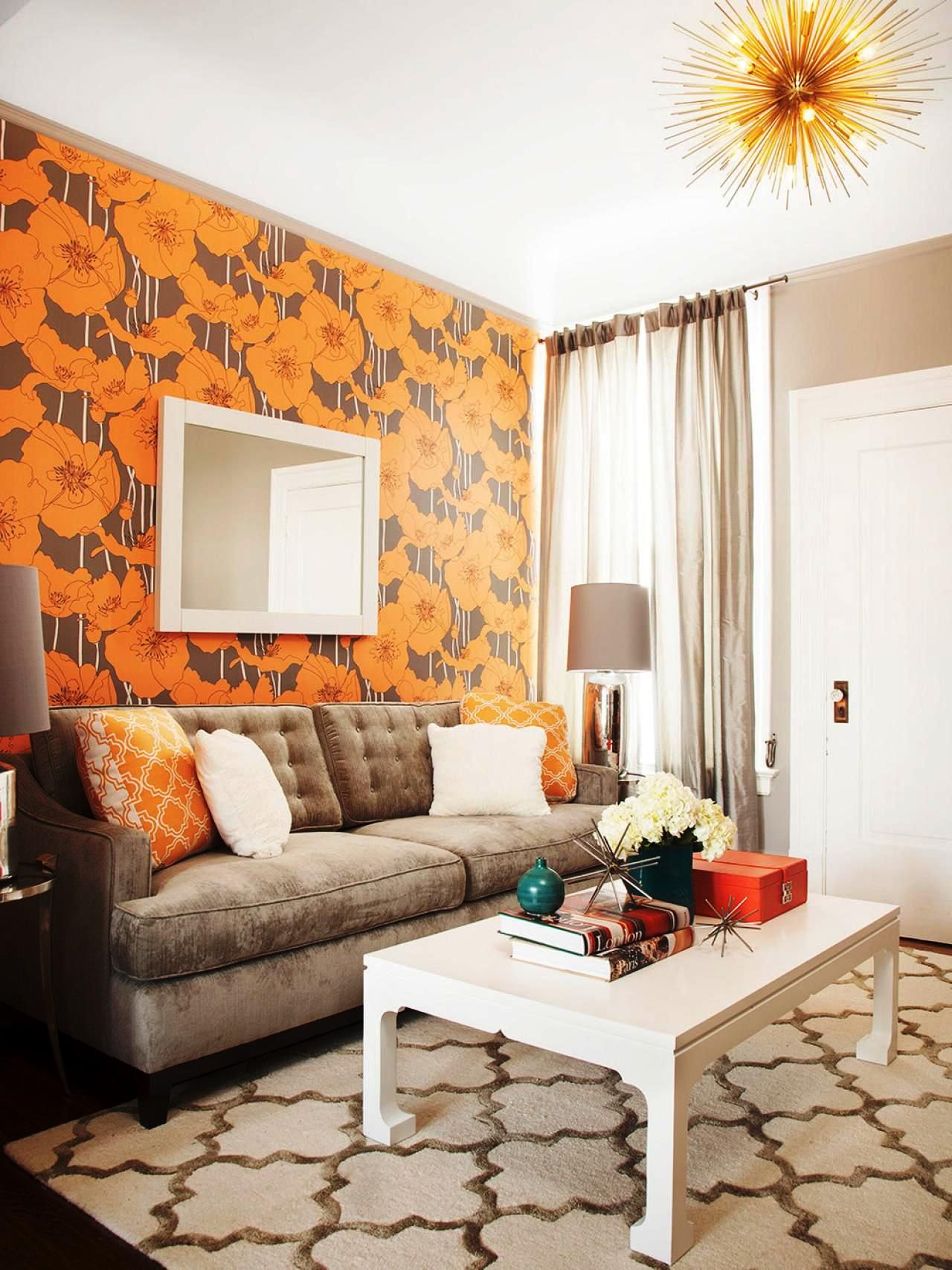 Decida o papel de parede de fundo que estará na sala - matiz claro, escuro ou brilhante. Só então você pode começar a escolher o tamanho da estampa floral, sua sombra, frequência de aplicação.