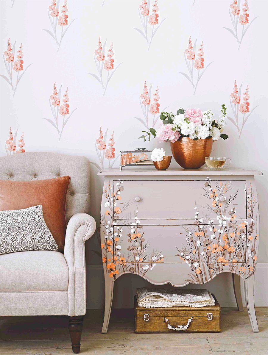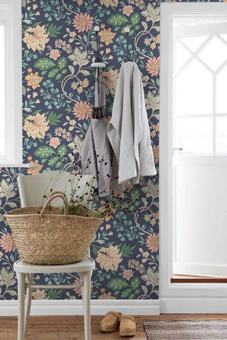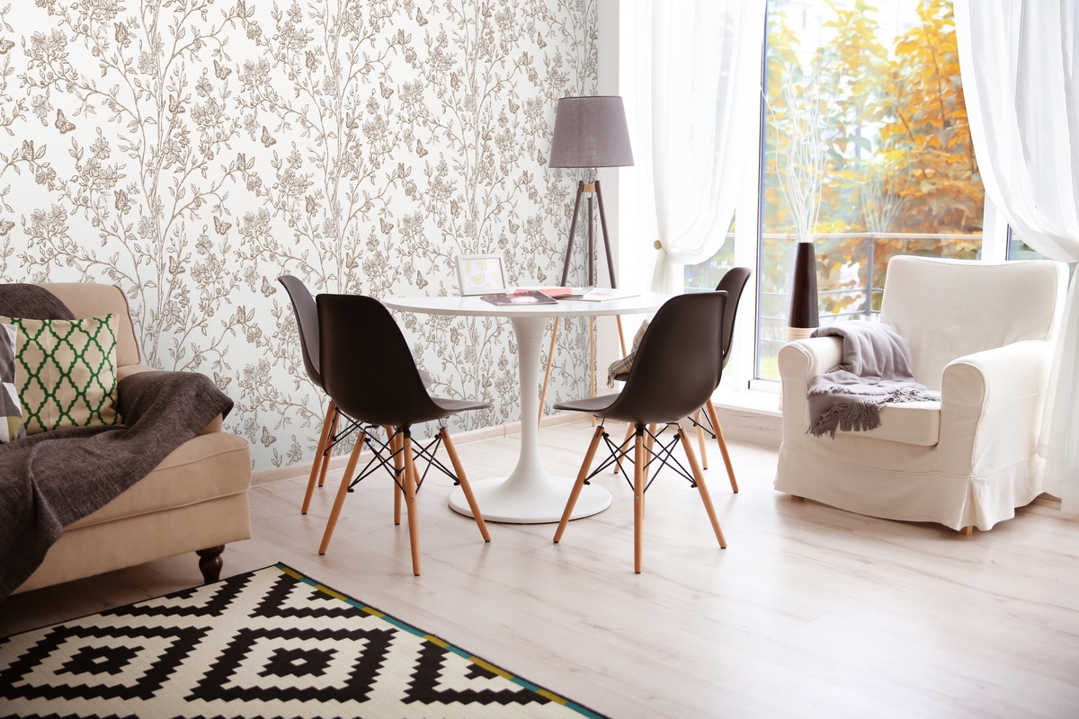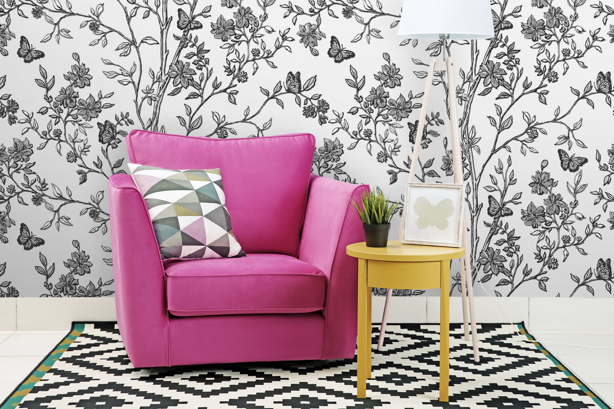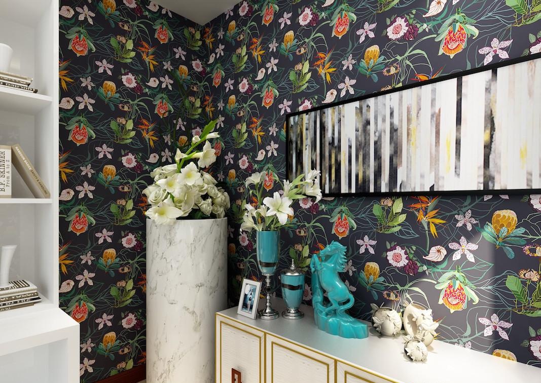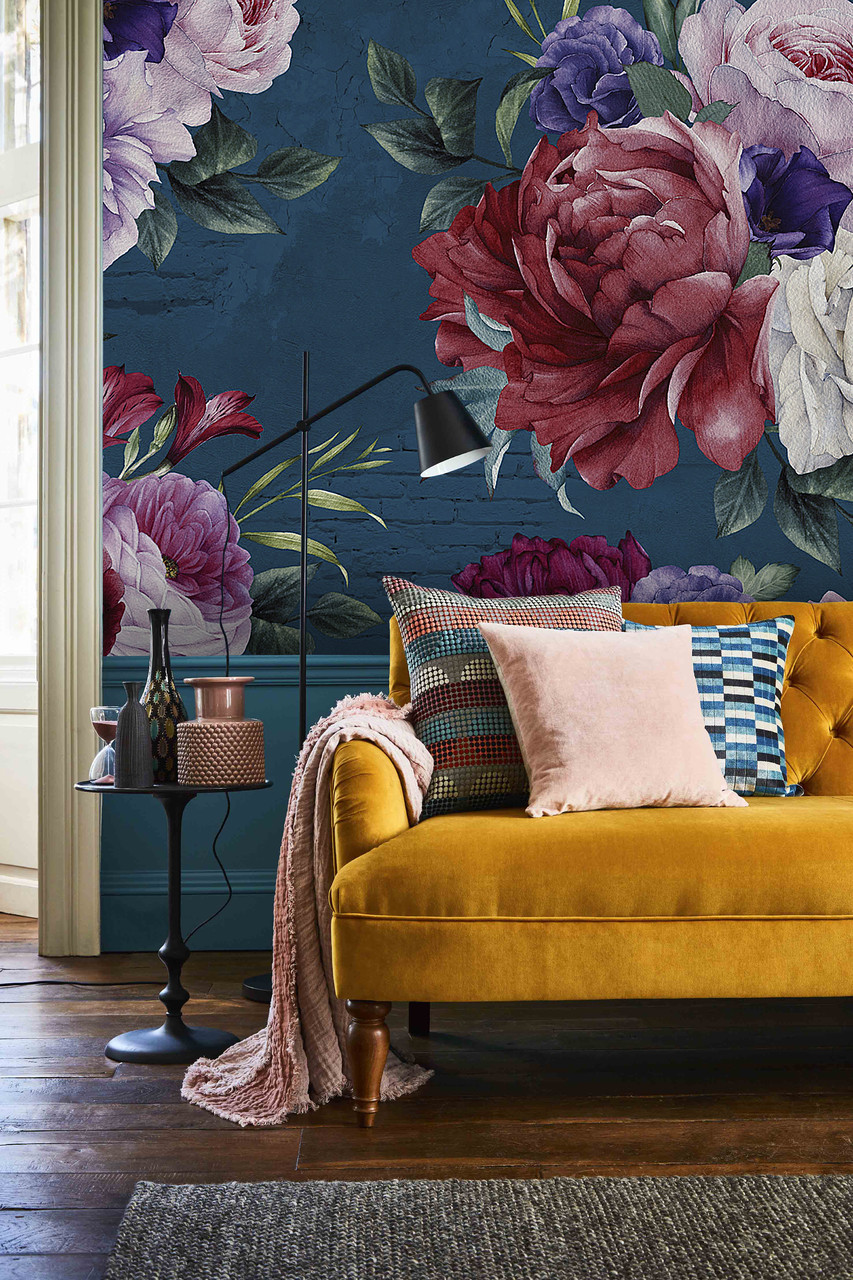 Decida o papel de parede de fundo que estará na sala - matiz claro, escuro ou brilhante. Só então você pode começar a escolher o tamanho da estampa floral, sua sombra, frequência de aplicação.