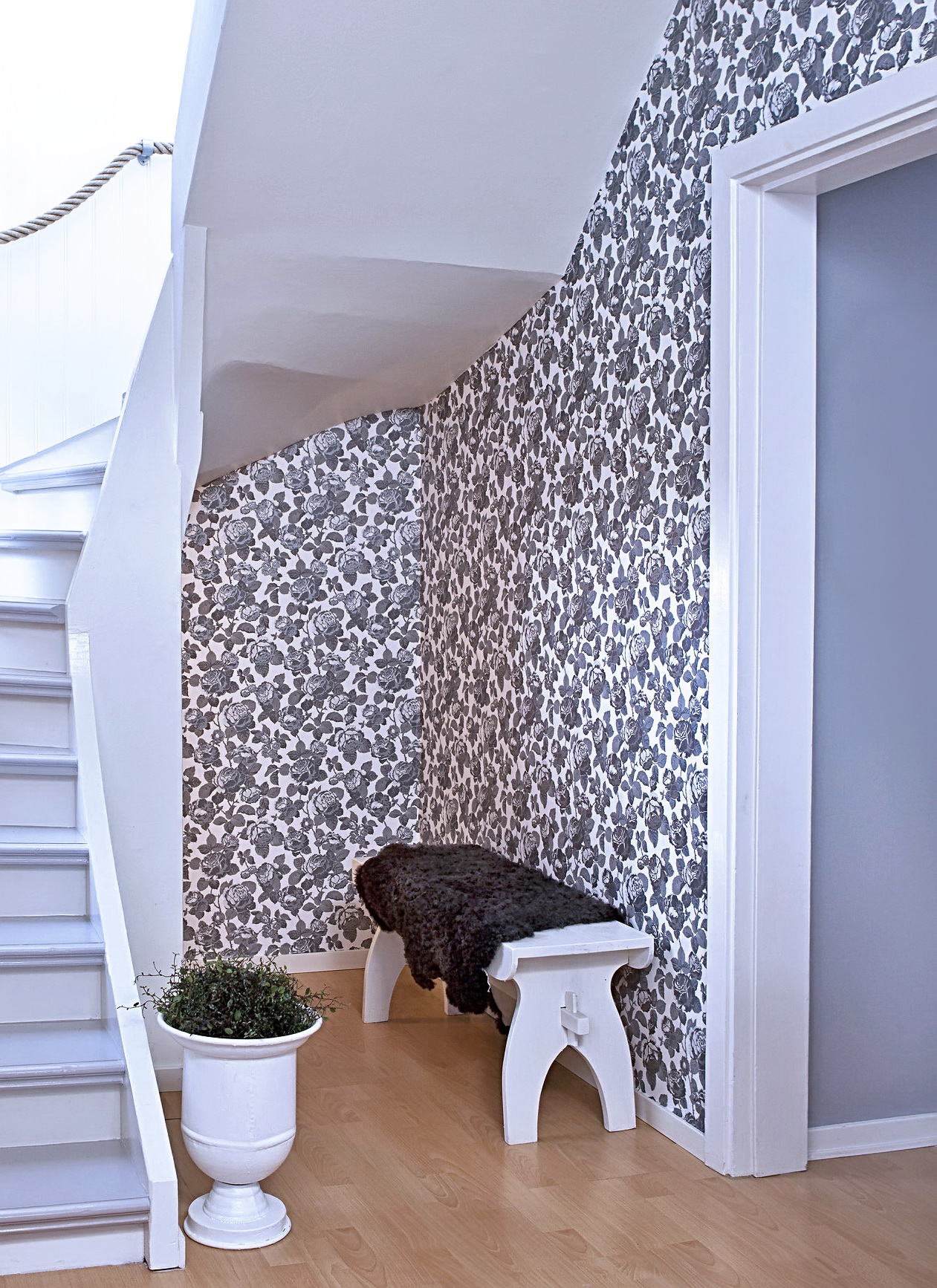 - Combinando papel de parede requer um equilíbrio. Concentre-se em uma coisa - em papel de parede brilhante em uma flor ou use apenas tons neutros em todo o interior.