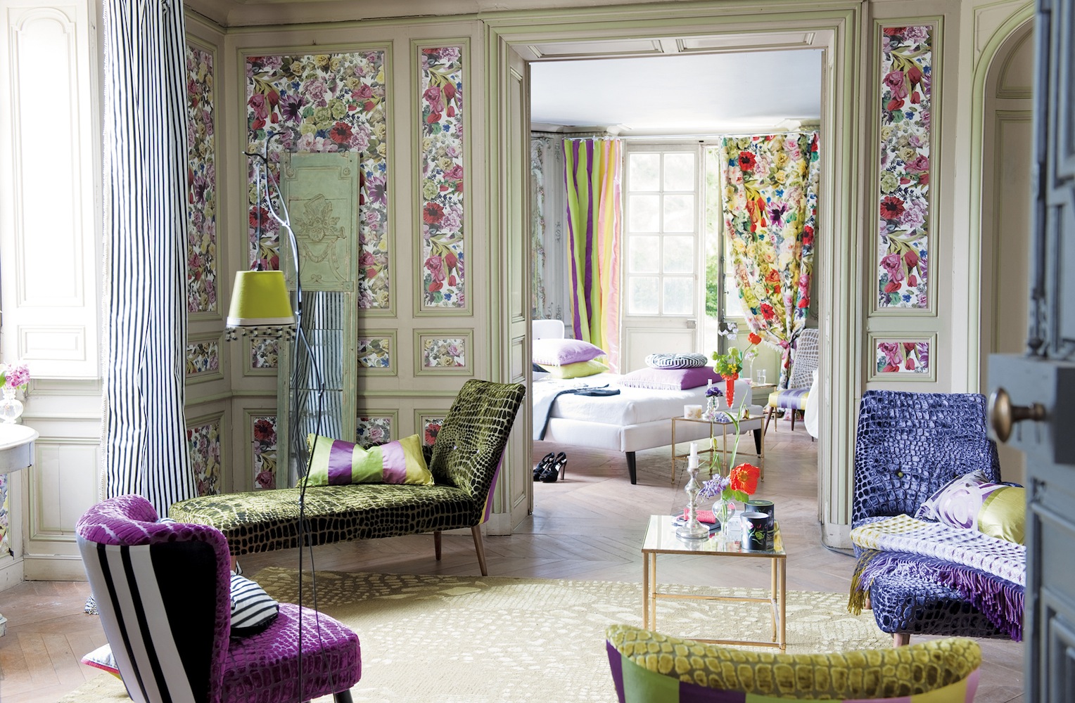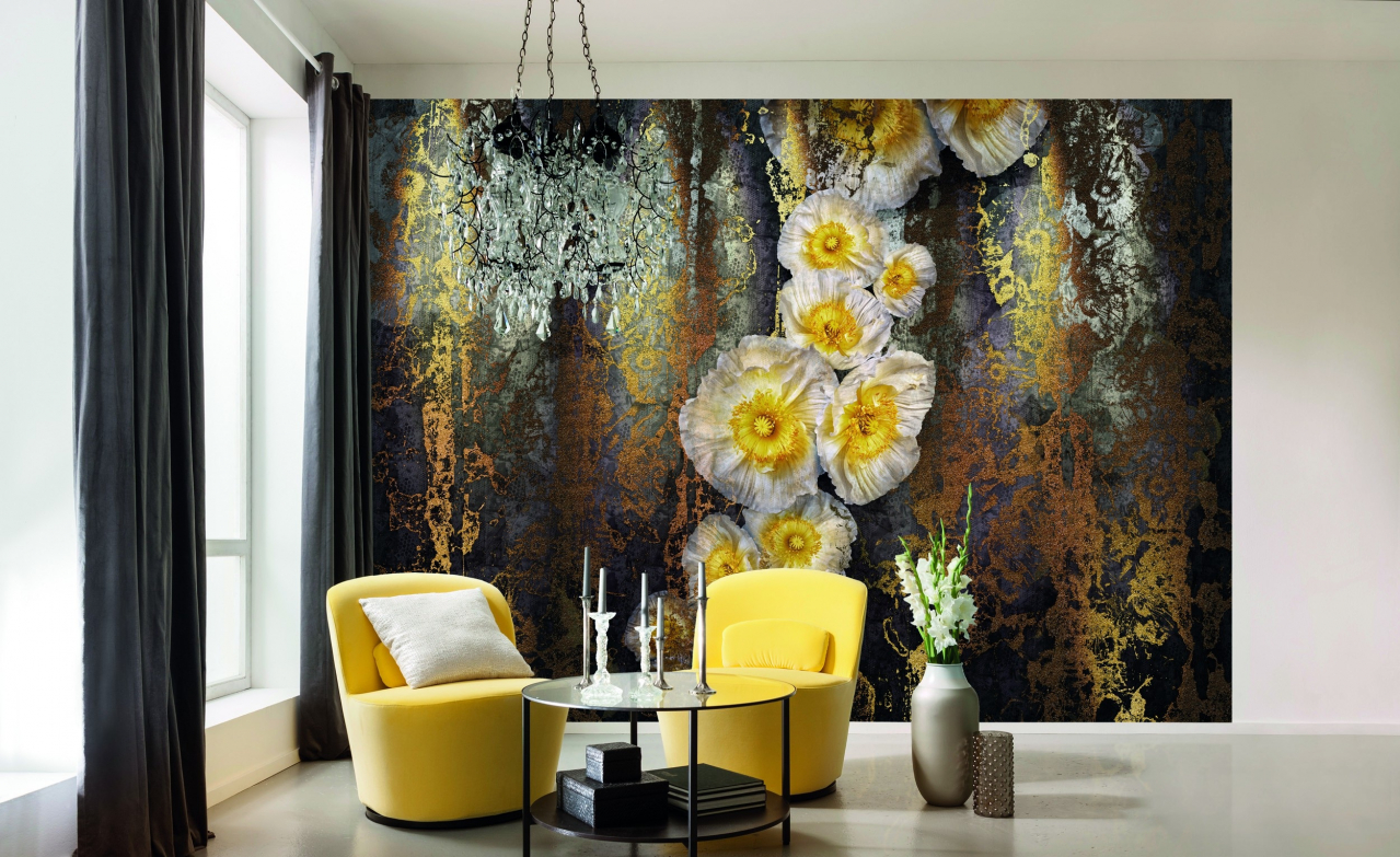 - O forte contraste do fundo e dos elementos florais aplicados pode ser usado em grandes salas. Caso contrário, ele vai "comer" o espaço livre.