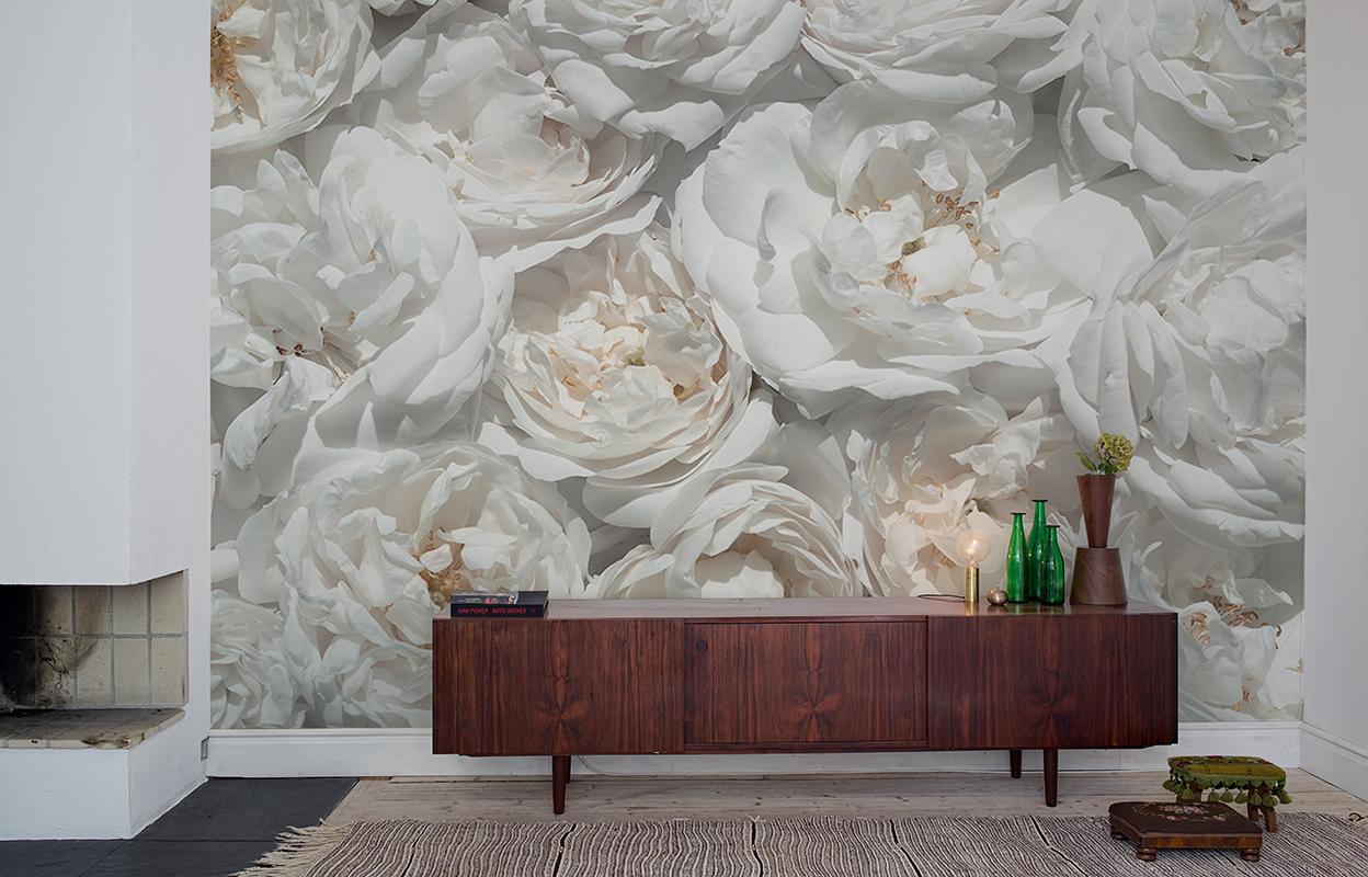 Papel de parede em flor branca, especialmente se for grande, vai tirar toda a atenção dos moradores. Isso deve ser considerado ao recriar o interior.