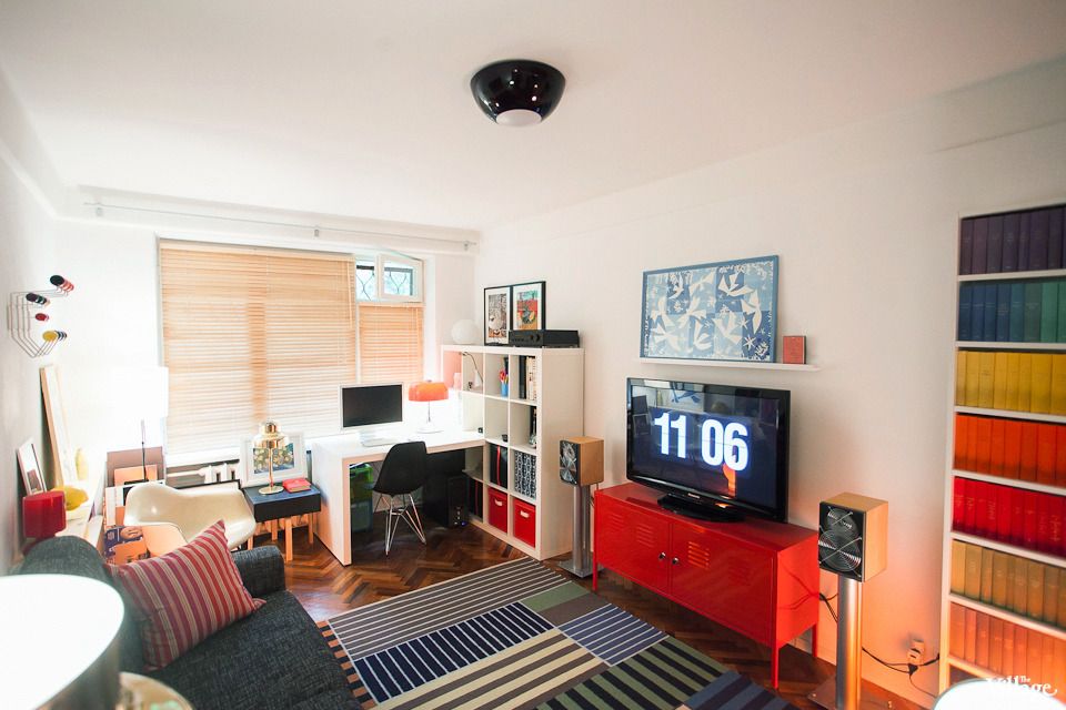 A geometria da imagem equilibra o tamanho pequeno dos quartos. Linhas horizontais empurram as paredes, linhas verticais aumentam o teto.