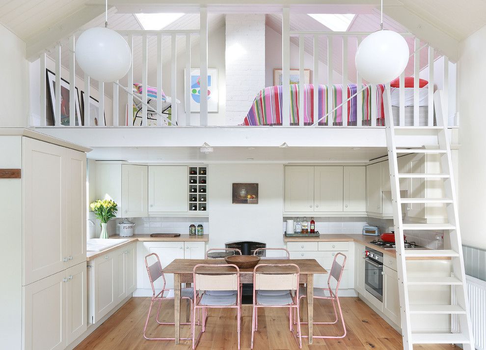Colocação em forma de L de conjunto de cozinha economiza espaço e ao mesmo tempo, há espaço suficiente para o trabalho