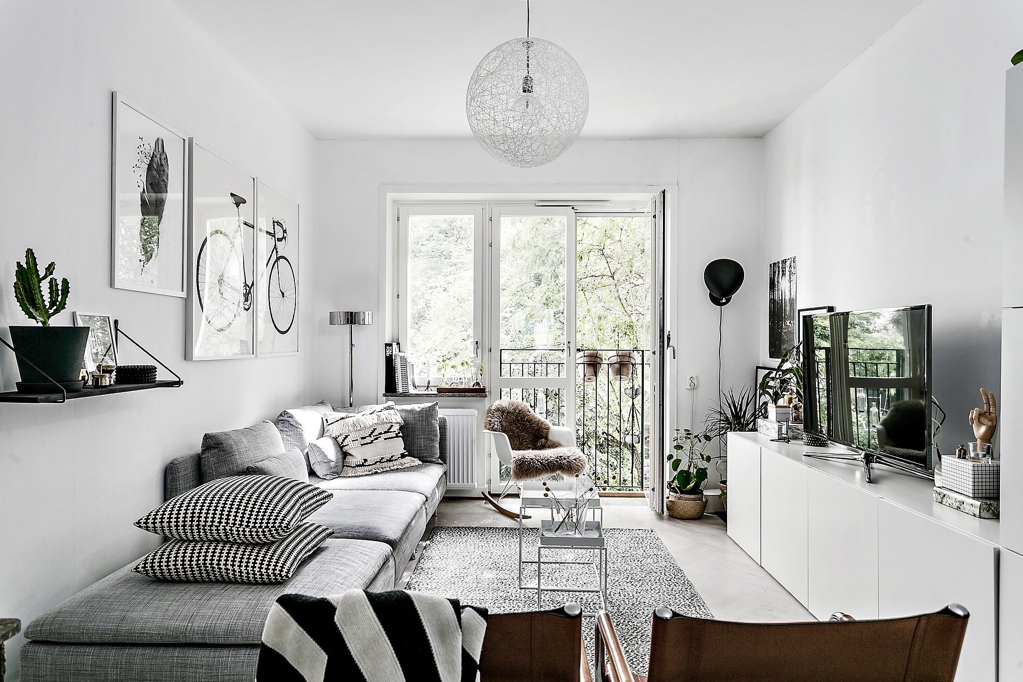 - Superfícies de espelho de armários expandem a área da sala.