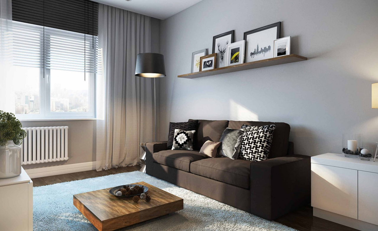 Você mora sozinho ou com a família? A escolha do mobiliário depende disso. Para solteiros ou famílias sem filhos, você pode permitir um item enorme. Por exemplo sofá. Ele se tornará o elemento base em torno do qual decorar. Neste caso, o resto do mobiliário deve ser leve, mesas com tampos de vidro, armários com portas espelhadas.