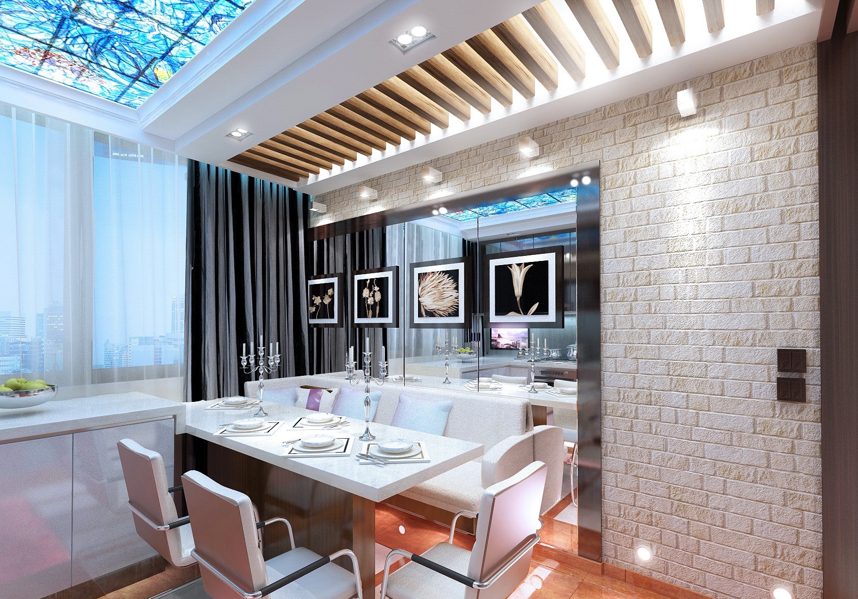 - Tetos brilhantes com uma superfície espelhada dissolve visualmente o teto.
