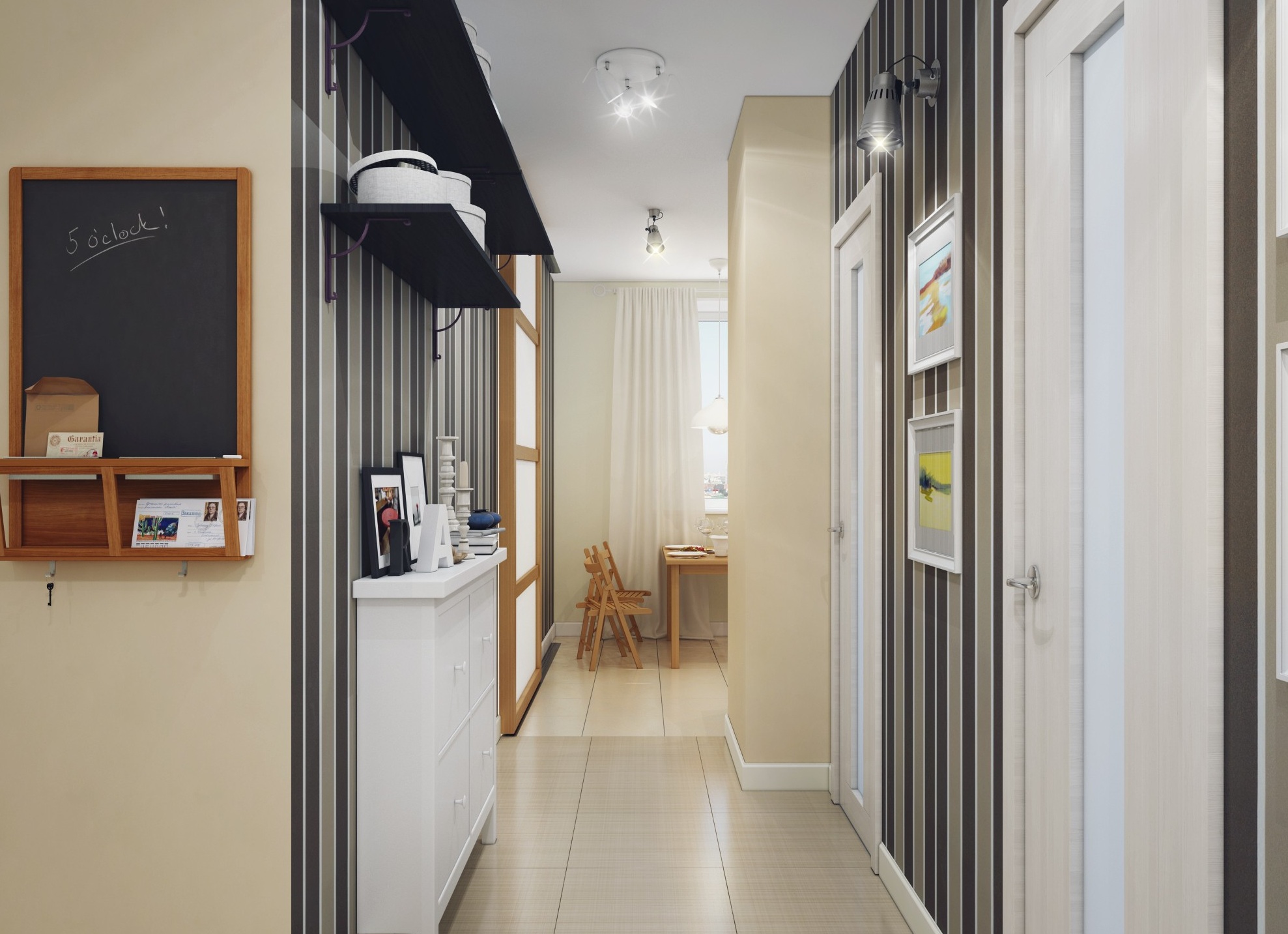 Instale pequenas arandelas e luzes no início e no final do corredor. A luz faz maravilhas - a sala se transformará.
