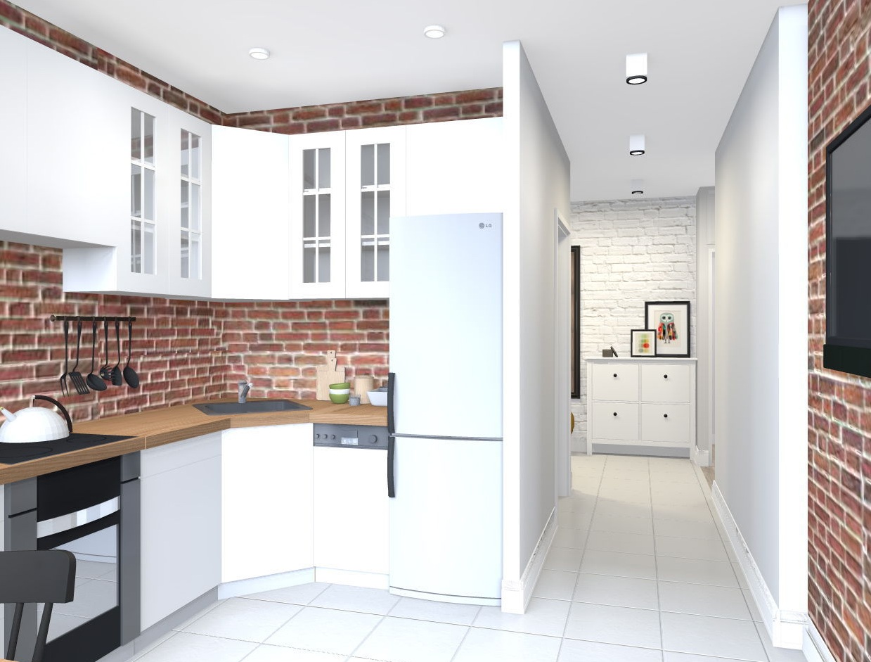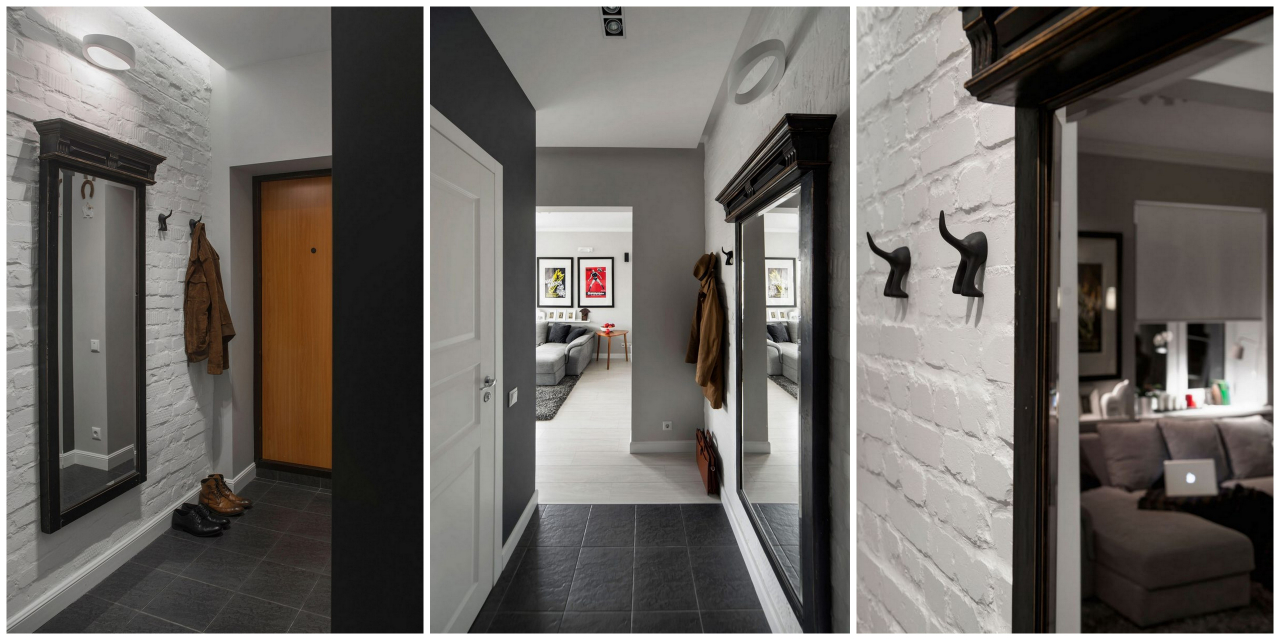 Remova a parede entre a sala e o corredor. Gesso cartonado cria um camarim. O corredor perderá uma pequena área e você terá um lugar espaçoso para roupas, sapatos e acessórios. Se você instalar as portas em ambos os lados, então você pode obter coisas do guarda-roupa do lado da sala e do corredor.