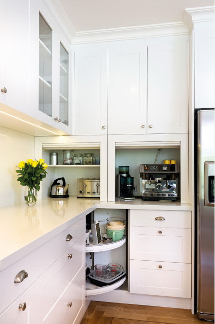 O layout envolve muitos sistemas de armazenamento diferentes, bem como uma grande zona de cocção.