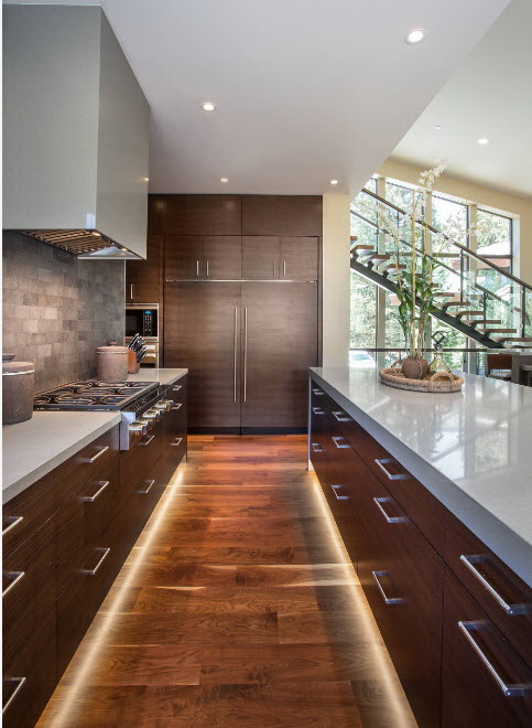 Cada fabricante tem um modelo de refrigerador embutido. Não há necessidade de pensar em onde esconder equipamentos com duas ou três câmeras. Eles são facilmente escondidos atrás das fachadas da moderna cozinha integrada. Devido a isso, as dimensões gerais do equipamento não serão capazes de violar a integridade da unidade no espaço.