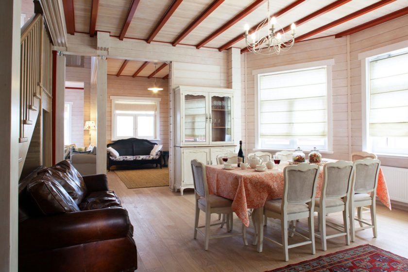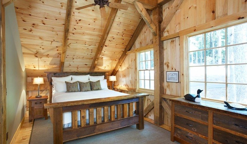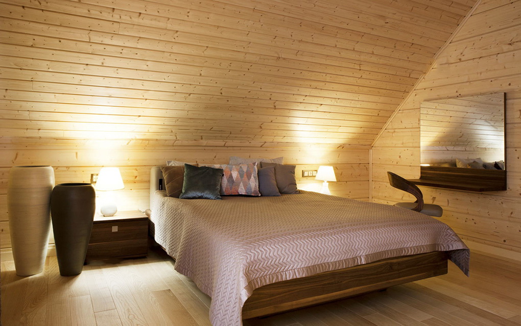 - Objetivo do quarto. Ao terminar a casa com a operação na estação quente, é razoável usar painéis de pinho bonitos e baratos. Para habitação com uma residência permanente é recomendado o uso de placas de cedro, carvalho, larício. Mas, ao mesmo tempo, é levado em conta que o cedro com larício produz um aroma conífero por muito tempo, então a madeira não é adequada para cobrir os quartos, quartos infantis.
