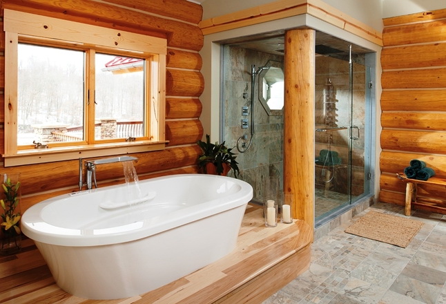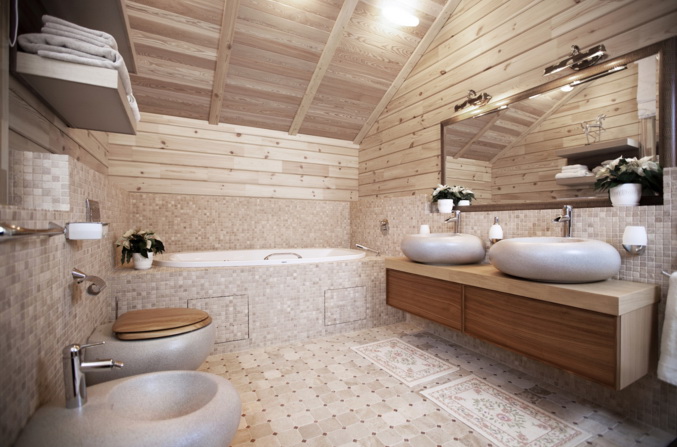 - Quarto no quarto com aquecimento. Você pode usar um feixe de simulação sem processamento cuidadoso e impregnações especiais. O material pode ser envernizado.