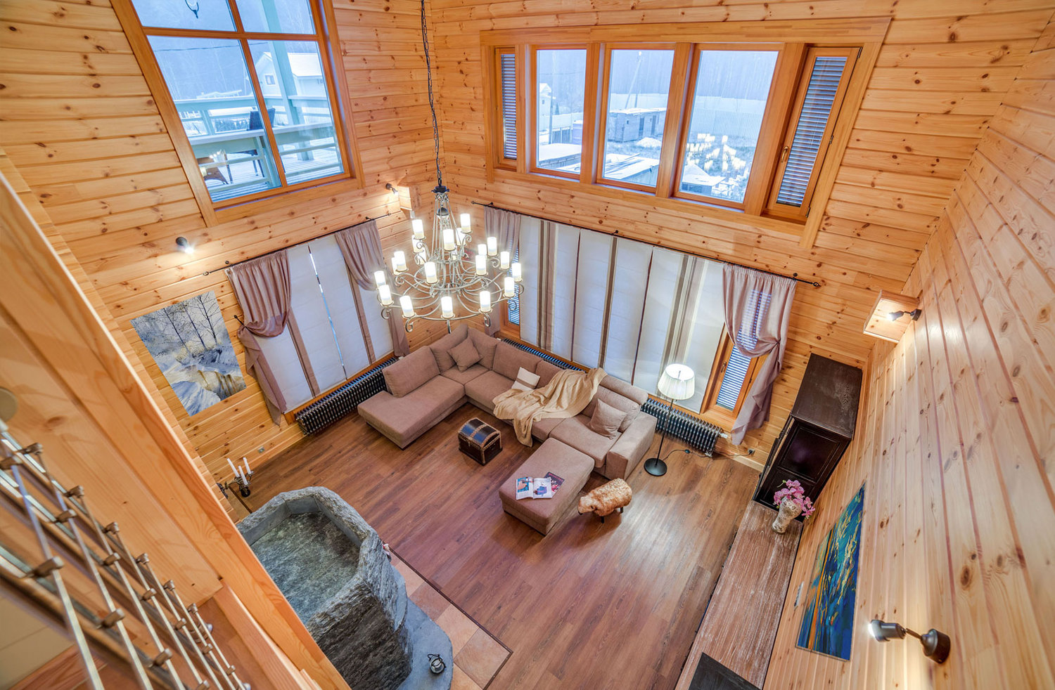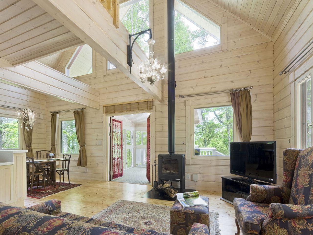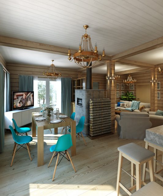 - Guarnição de madeira completa fora. Qualquer um pode ter tal lar. O layout é adequado para atividades de vida permanente ou ao ar livre. Bar pode ser cortado dentro e fora de acordo com o exterior e interior.