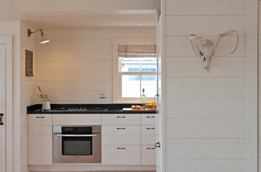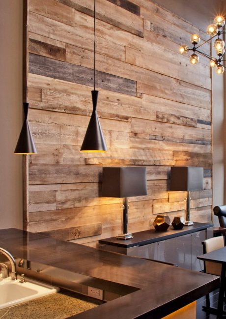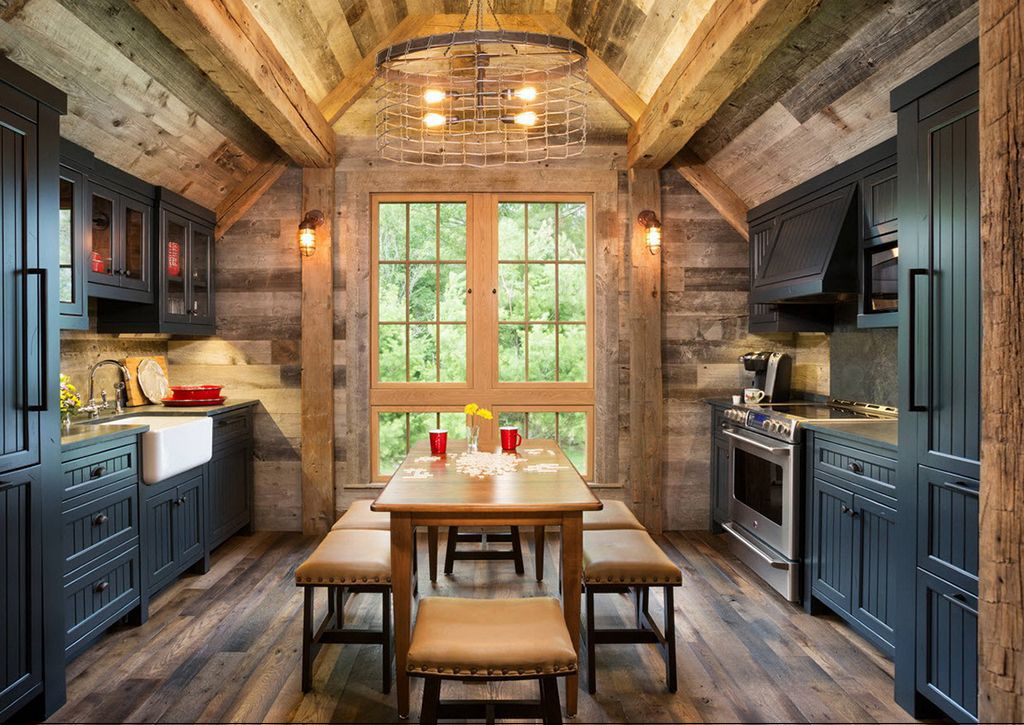Embainhar uma cozinha com uma árvore é bem possível, se feito corretamente, sem negligenciar a tecnologia. Geralmente é usado revestimento de madeira - painéis finos com ranhuras especiais que são feitas umas com as outras para cobrir as paredes. A espessura de um painel atinge três centímetros, largura até quinze.