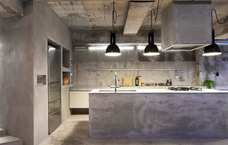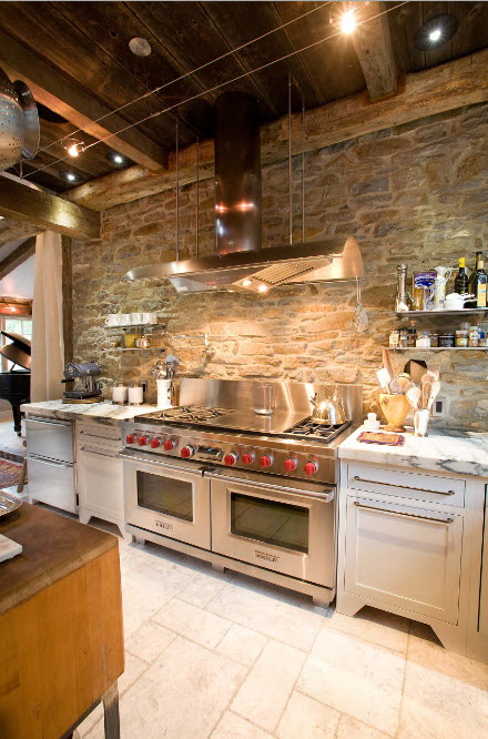 Tinta de cozinha é usada com reservas - ainda tem menos resistência do que a telha, especialmente pedra natural.