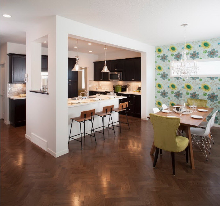 A idéia de que o papel de parede não é adequado para a cozinha há muito tempo foi refutada, porque além do papel, outras variedades mais resistentes às influências ambientais apareceram. Cada um deles - com suas vantagens.