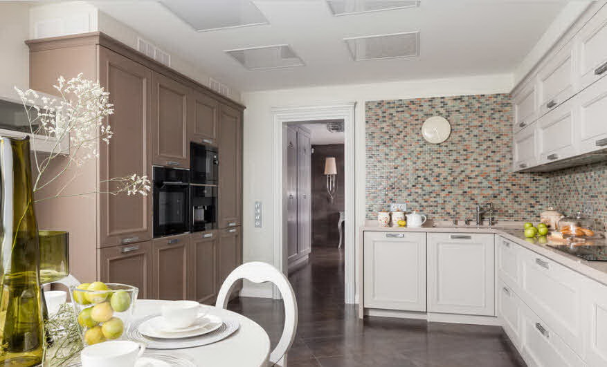 - Espaço reduzido. Os painéis retiram-se quatro centímetros de cada parede - como resultado, a cozinha torna-se não apenas visualmente menor, mas também perde em volume.