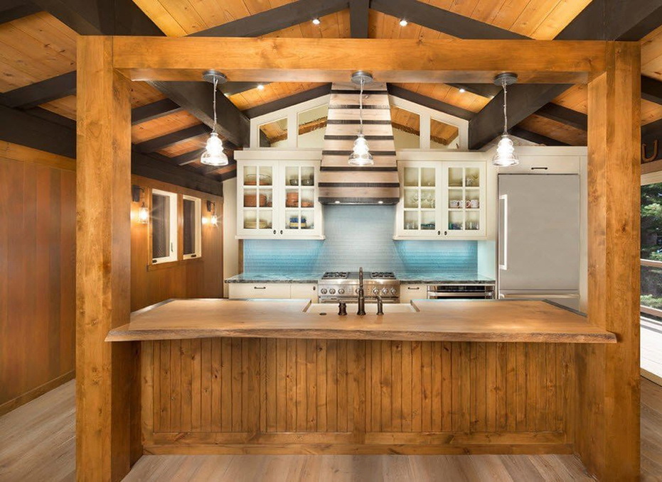 - Beleza A madeira, juntamente com a pedra, é um material natural e nobre. Vai tornar a cozinha mais confortável, mais quente, vai dar-lhe um chique incomparável.