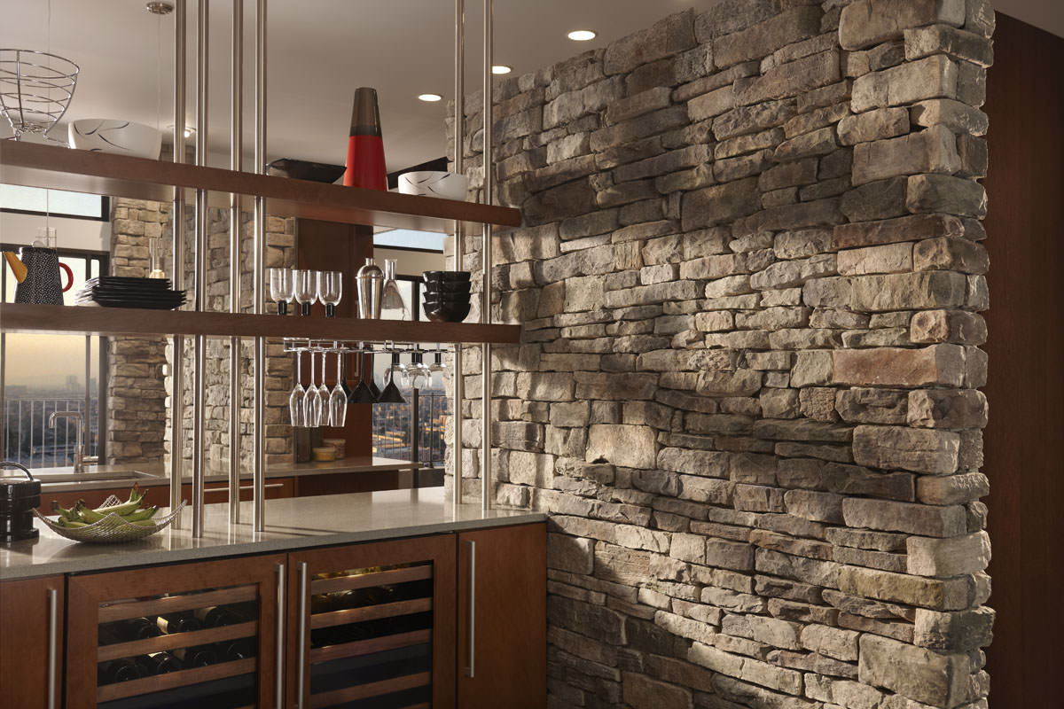 Mas ao mesmo tempo é caro, e também difícil - para cobrir uma parede com uma pedra, você precisa comprar as telhas mais finas, fixá-las com cola forte, começar necessariamente a partir do fundo. Calcule se a parede pode suportar essa carga.