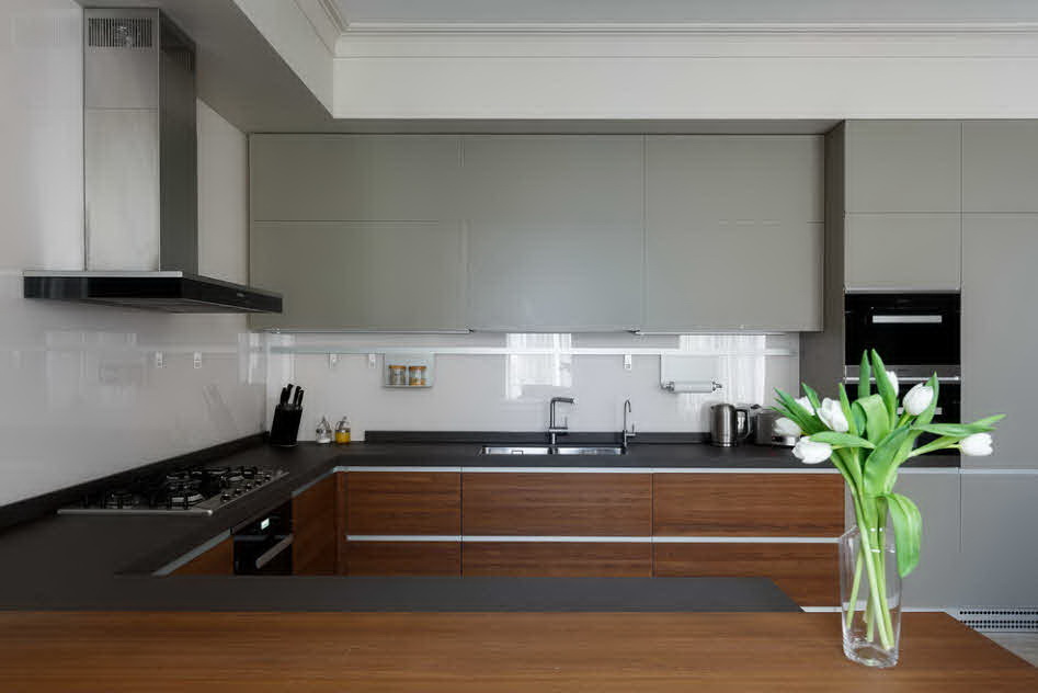 - Fácil de cuidar. Fatias de comida, respingos de gordura e fuligem entram nas paredes da cozinha - devem ser fáceis de limpar, os produtos químicos não devem causar danos e, mesmo após a 50ª limpeza, o material deve manter o brilho original.