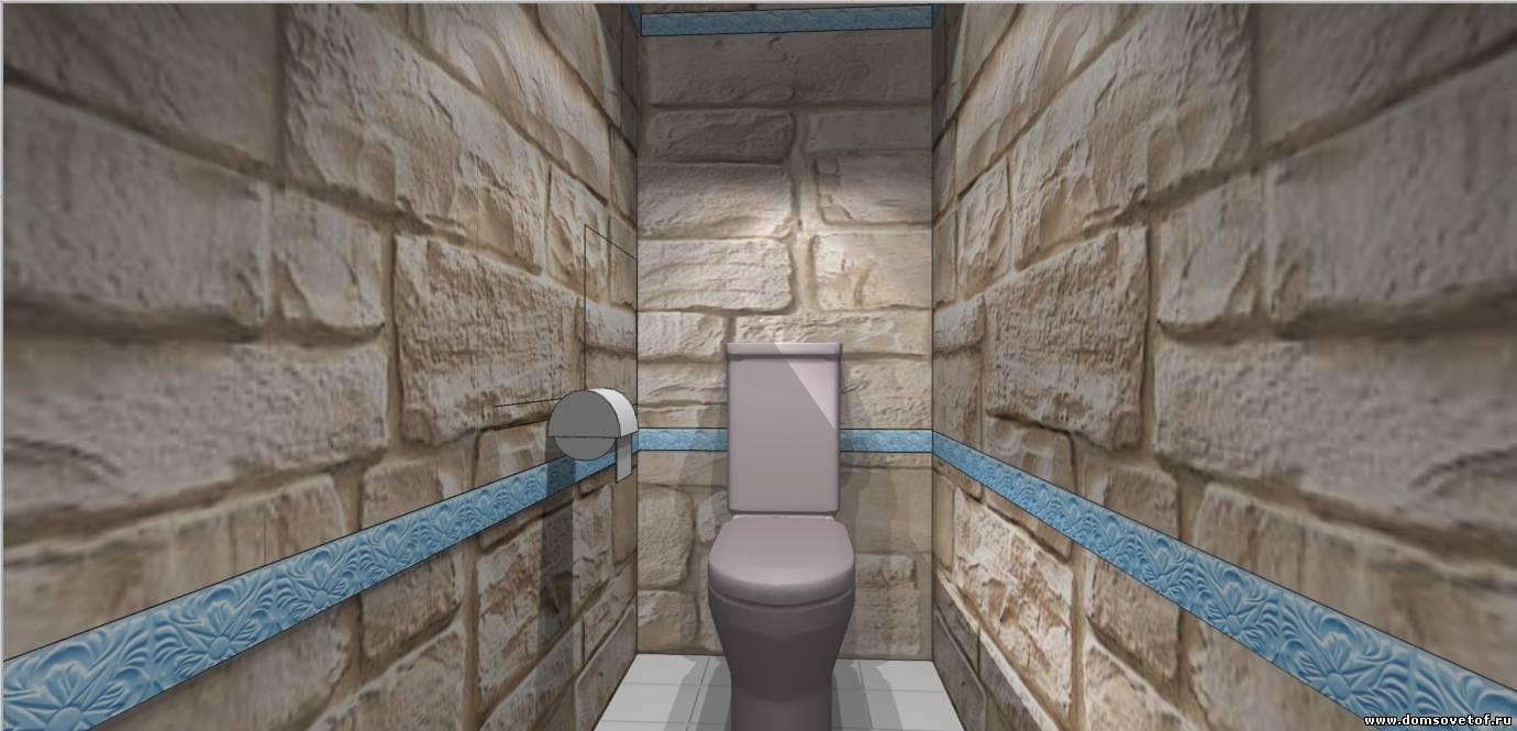 - Em uma parede livre acima do banheiro, você pode colocar painéis de pedra ou uma imagem de abstração em lajes de pedra.