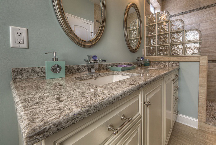 Para as espécies, você precisa escolher uma pedra que esteja em harmonia com o resto da decoração ou itens de interior. Ao escolher uma pedra de tons claros para o banheiro, o interior parecerá nobre e elegante.