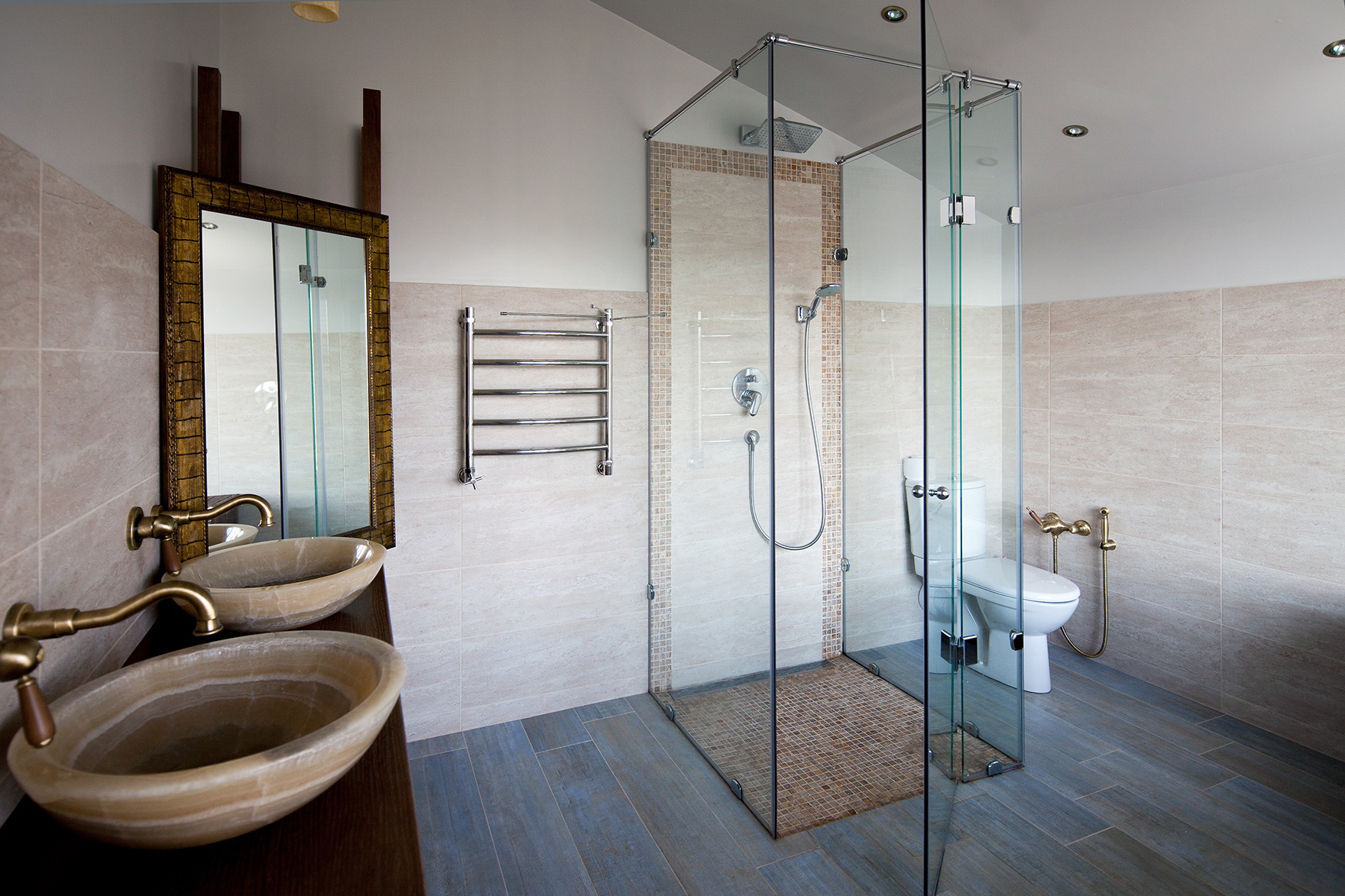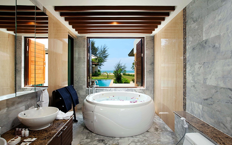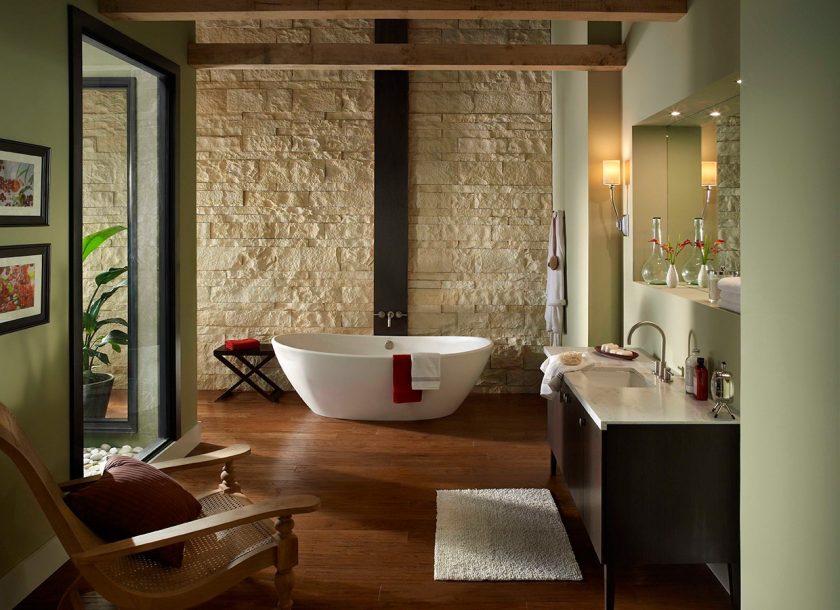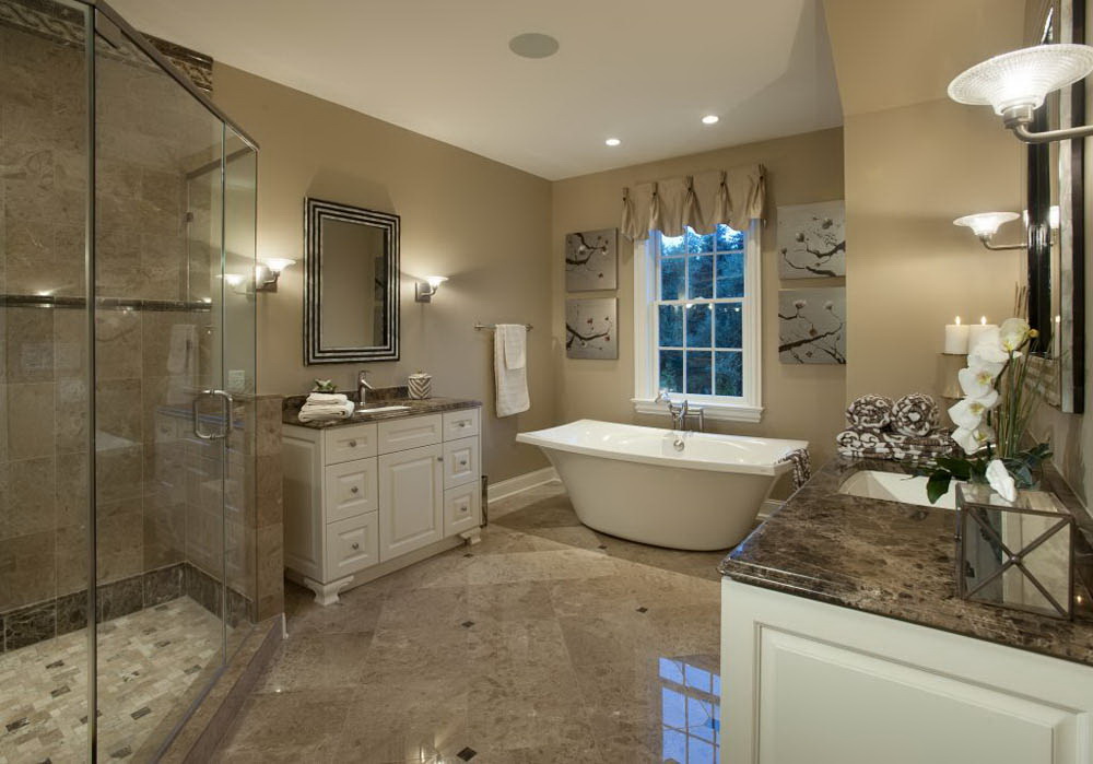 O maior item no banheiro é o banho em si. Mesmo esse atributo pode ser feito de pedra artificial.