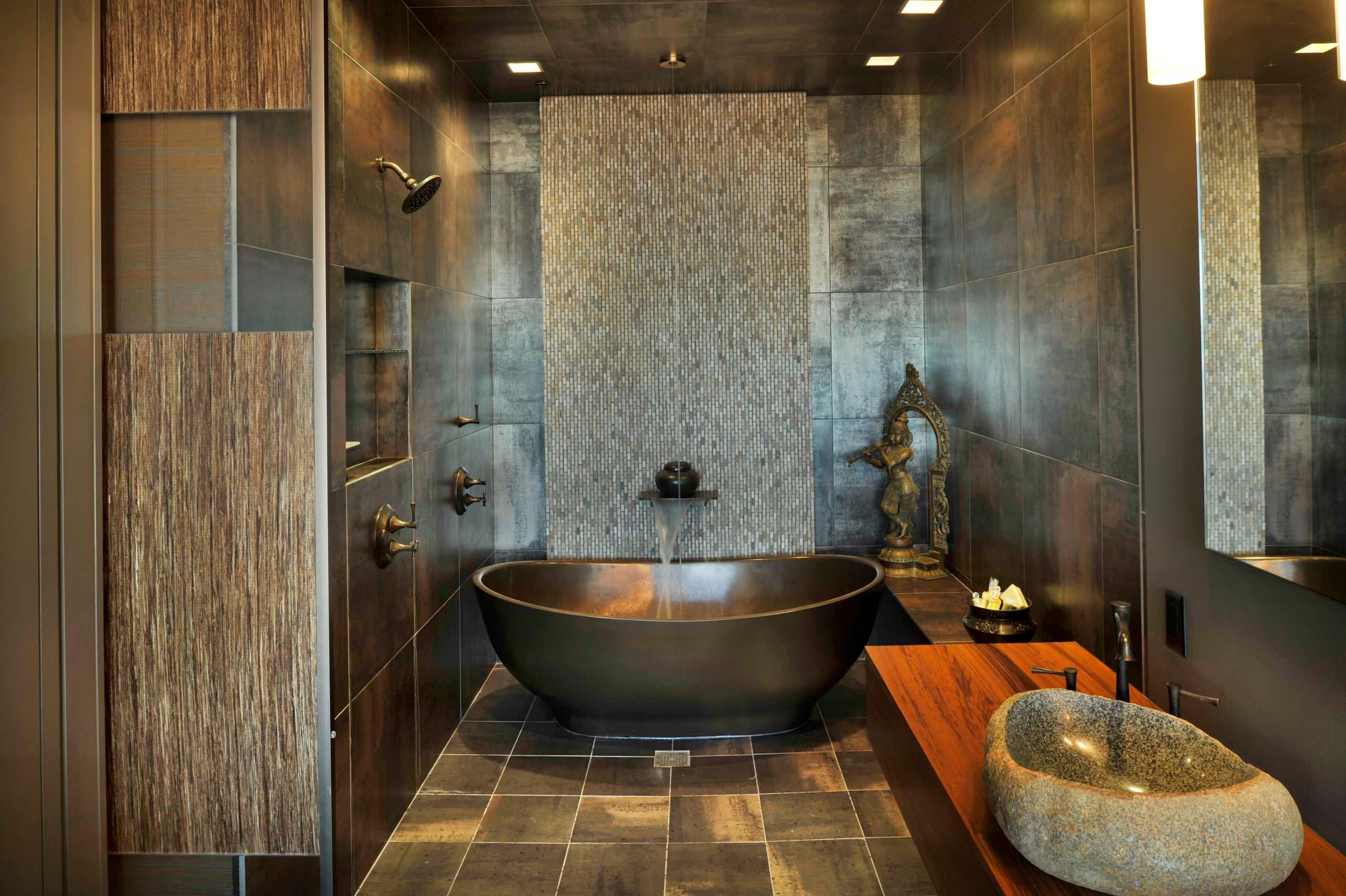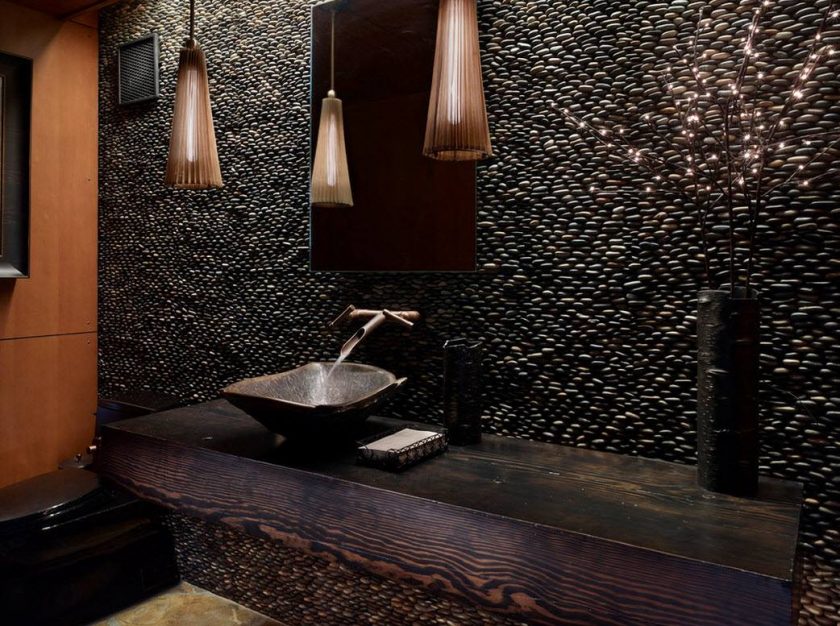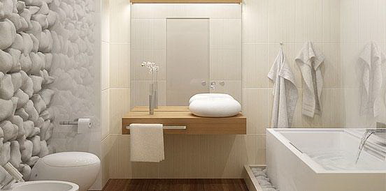 - É sempre necessário lembrar o senso de proporção ao usar uma pedra decorativa, para não transformar acidentalmente o banheiro em uma espécie de caverna.