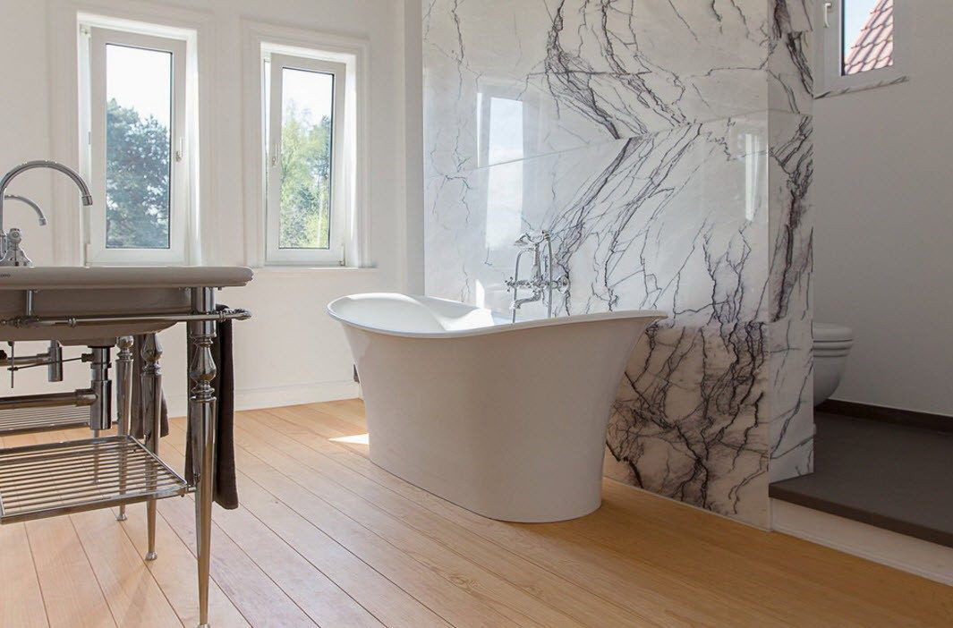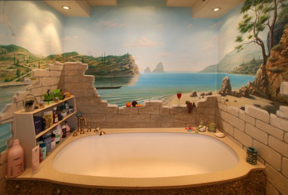 O material artificial é bem tratável. É por isso que você pode criar os projetos mais incríveis de banhos em seus próprios projetos. Embora à venda, há uma enorme gama de vários modelos originais e incomuns.