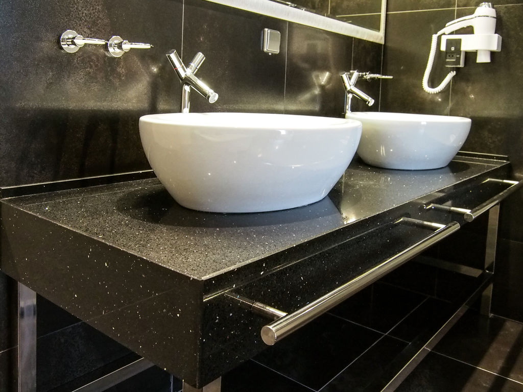 Na maioria das vezes, as bancadas do banheiro são feitas desses tipos de materiais artificiais: