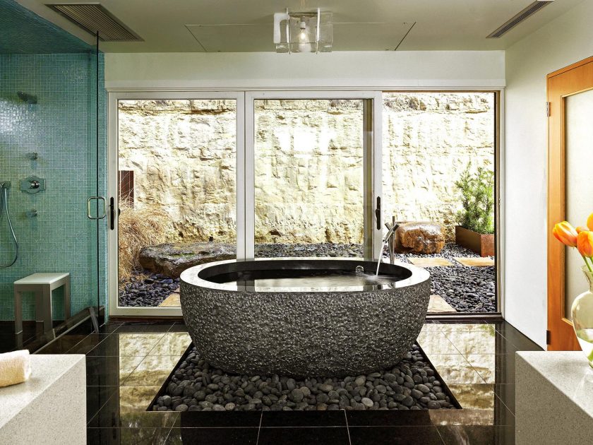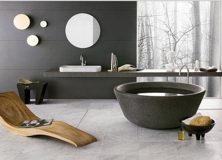 Um bloco de pedra monolítico tornará o interior especial, claramente diferente do resto. Além disso, pode ser criado por desenvolvimentos individuais. O processo de operar esse banho traz excelentes sensações táteis e também proporciona alívio psicológico, torna a atmosfera especial.