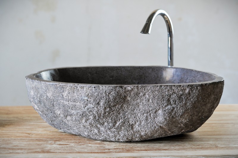 - Para completa harmonia com a natureza, o banheiro pode ser encomendado encanamento feito de pedra, em forma de seixos do rio. Produtos geralmente têm bordas arredondadas, o que torna sua aparência muito incomum e interessante.
