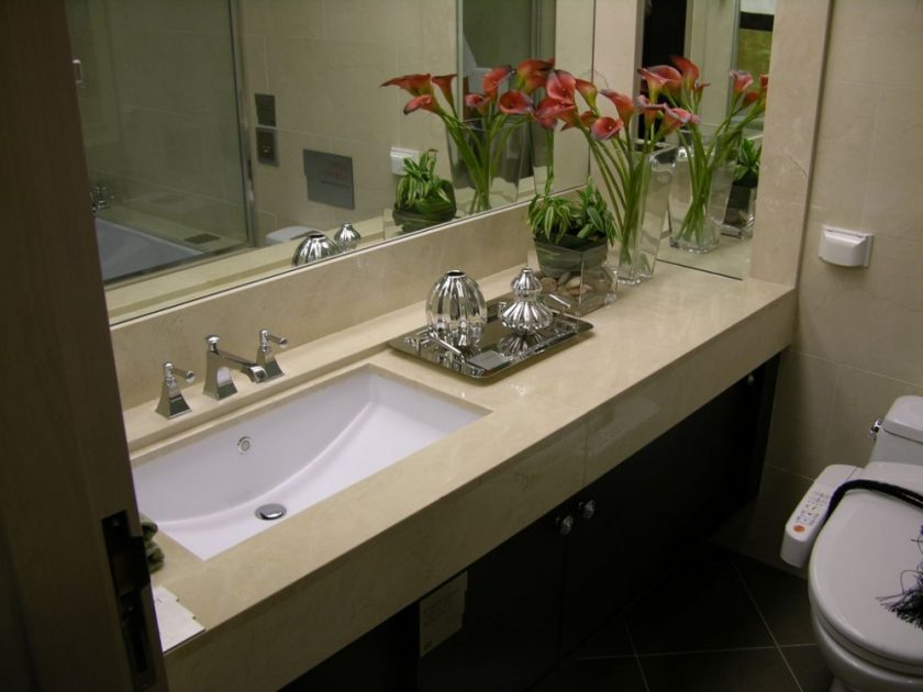 Escolher qualquer tipo de bancada para o banheiro vale a pena por causa de suas vantagens, bem como a facilidade de tratamento para o revestimento. Bancada de pedra artificial tem uma alta resistência a produtos químicos.