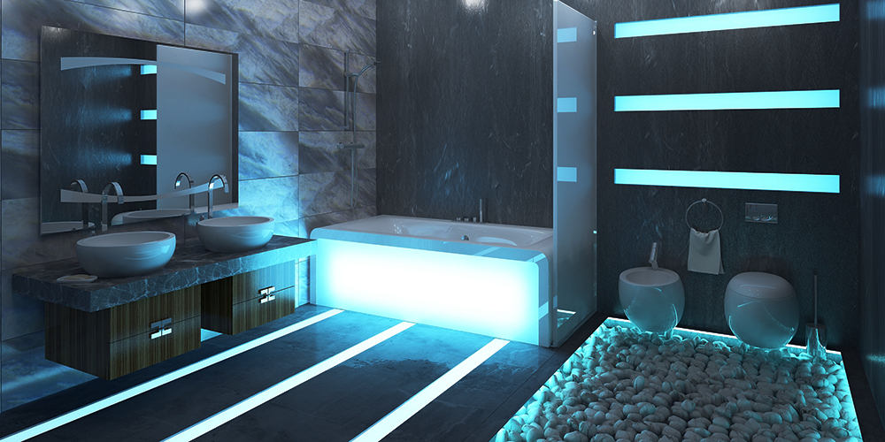 Um lâmpada em tecto pode não ser o suficiente. Uma pessoa vai sentir que ele está em uma bolsa de pedra. Portanto, é melhor criar uma iluminação de vários níveis que torne todos os cantos escuros no banheiro brilhantes.